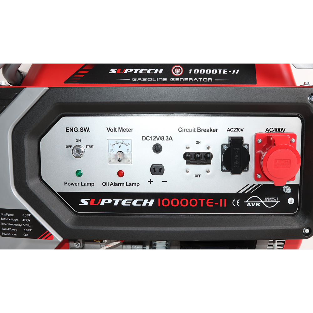Бензиновый генератор с четырехтактным двигателем SUPTECH, мощный, но при этом очень компактный, легко транспортируется благодаря ручкам и колесам. Бензиновый генератор с четырехтактным двигателем может использоваться как в садоводстве, так и в сельском хозяйстве и строительстве. Это очень прочный, высококачественный и мощный генератор со 100% медными обмотками. Двигатель этого устройства имеет индикатор уровня масла, очень простой электрический запуск и отлично работает независимо от условий рабочей температуры. Благодаря своей мощности, мобильности и функциональности этот генератор понравится всем! Технические характеристики: