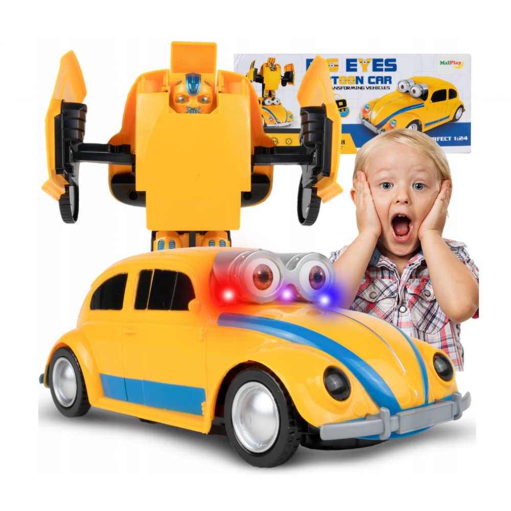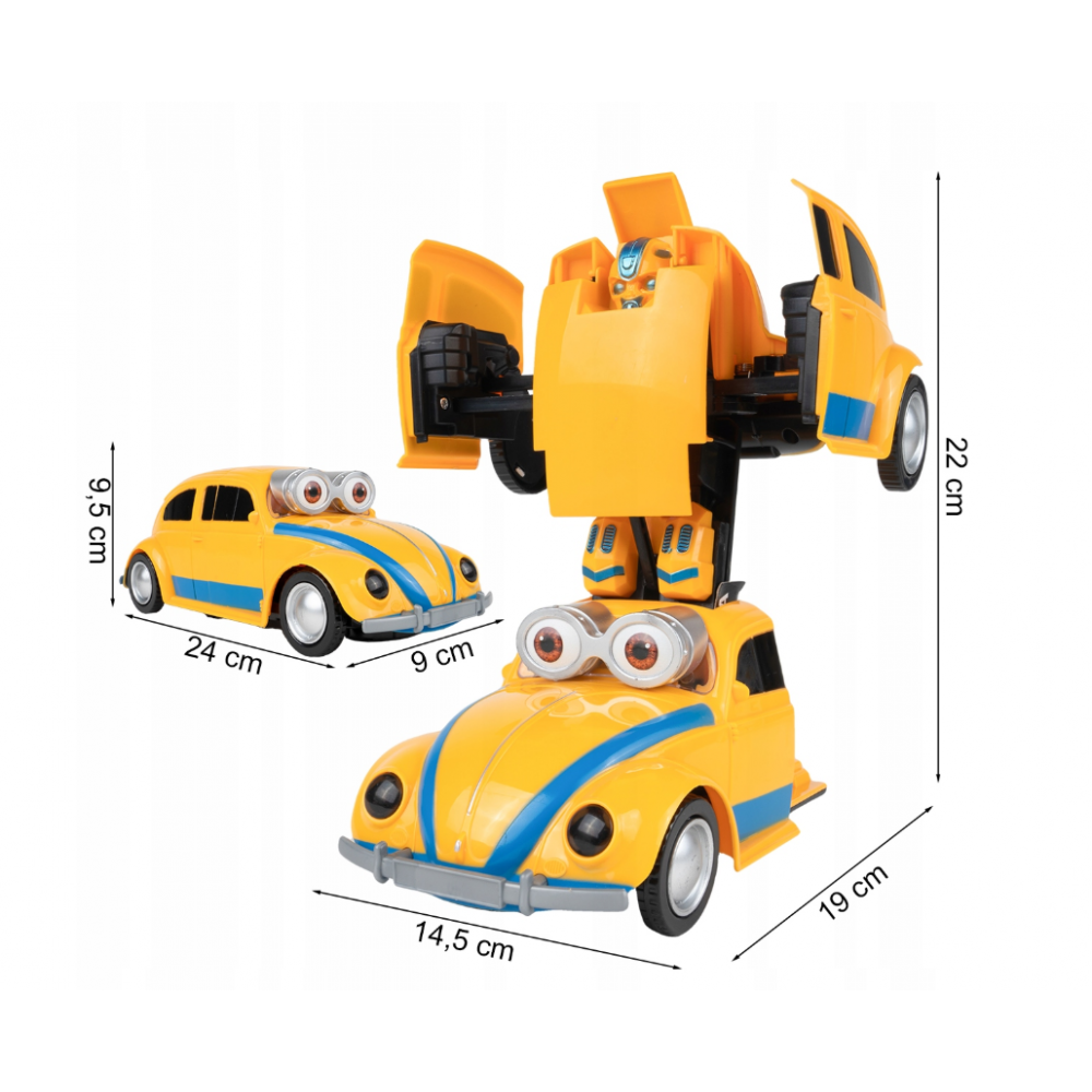 Очаровательная машинка-жук, трансформирующаяся в робота, — мечта каждого маленького автолюбителя. Эта невероятно забавная игрушка может использоваться как в качестве машинки, так и робота. После включения игрушка едет во всех направлениях и мгновенно трансформируется из машинки в робота и обратно ! Дети могут наблюдать за движением игрушки, которое сопровождается приятными звуками и яркими огнями.