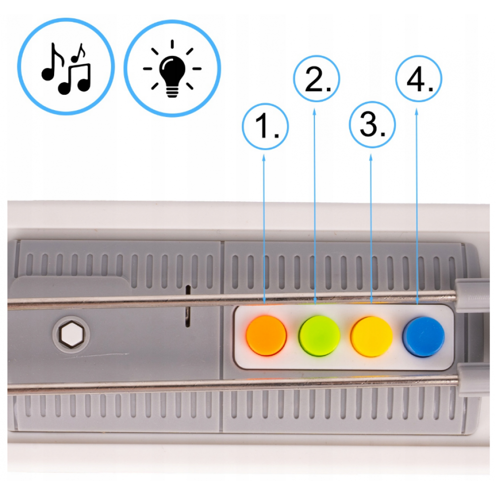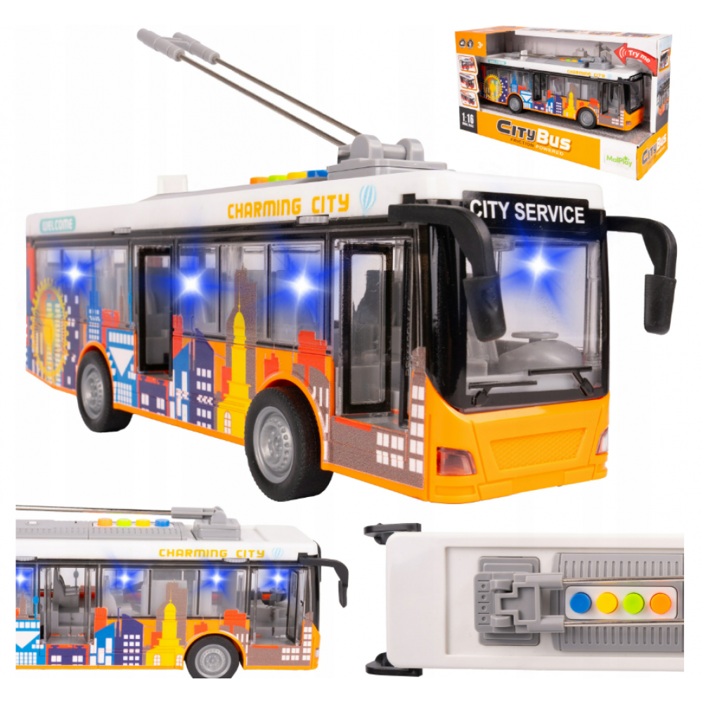 Наш CityBus оснащён четырьмя цветными кнопками, расположенными на крыше. Каждая из них активирует свой звуковой и световой эффект, делая процесс более интерактивным и реалистичным: