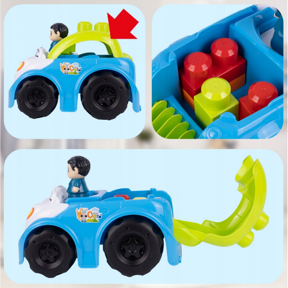 Машинка с кубиками — это игрушка, сочетающая в себе функции транспортного средства и конструктора. Это позволяет детям не только играть с машинкой, но и создавать различные конструкции из кубиков. Компактный размер позволяет легко брать её с собой, что делает её идеальной для игр как дома, так и на улице.