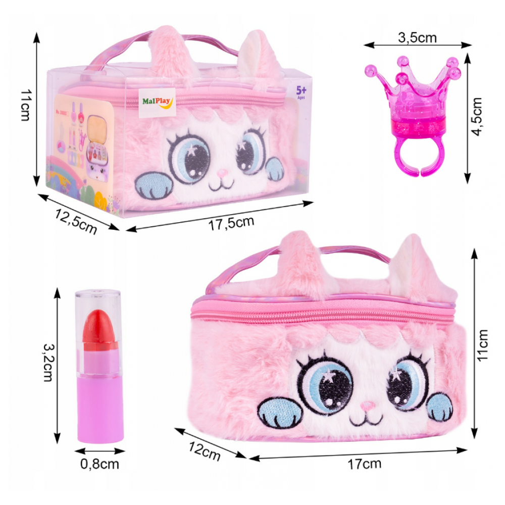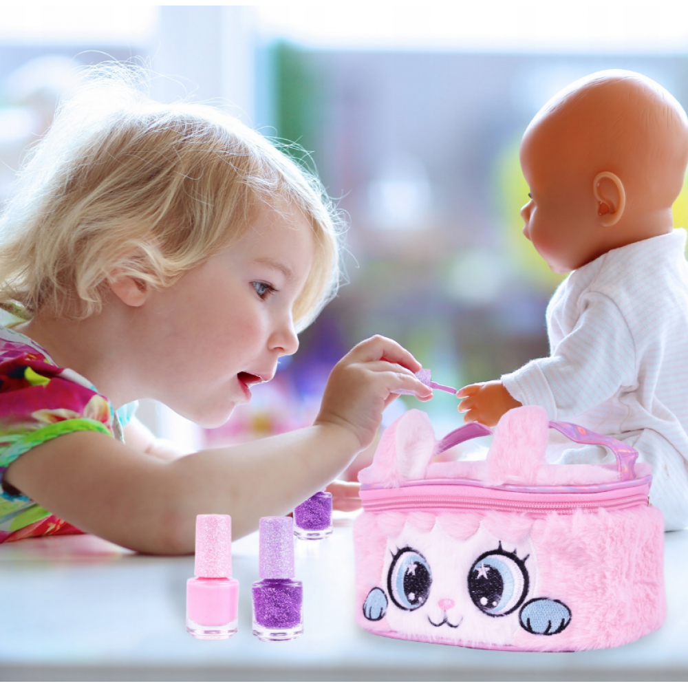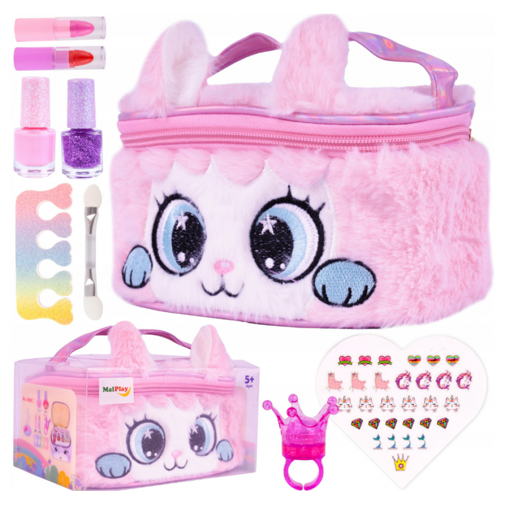 - Игрушка в виде пушистого котенка — идеальный вариант для маленького любителя животных и косметики!