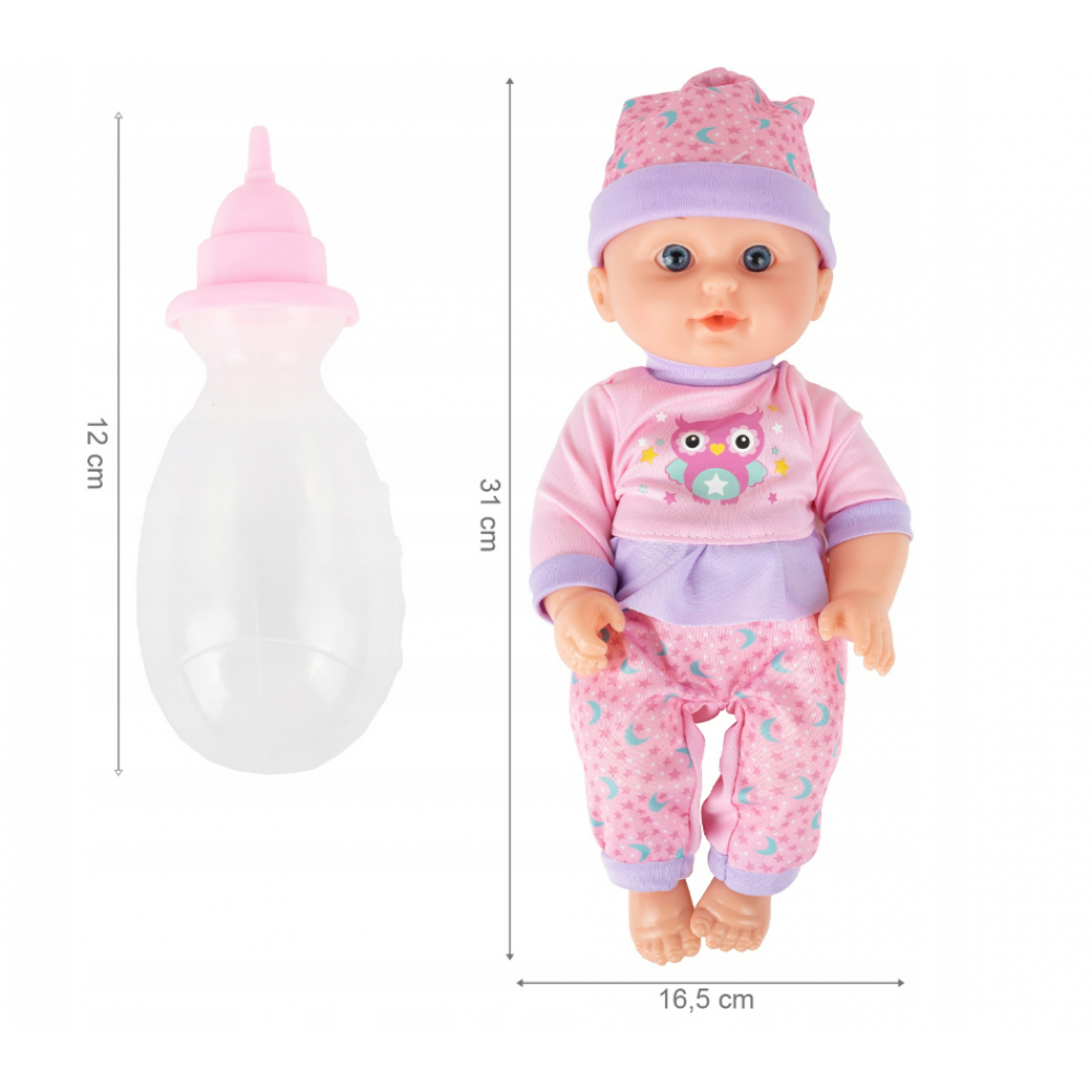 - Мы можем налить воду в бутылочку и покормить куклу, которая потом пописает.