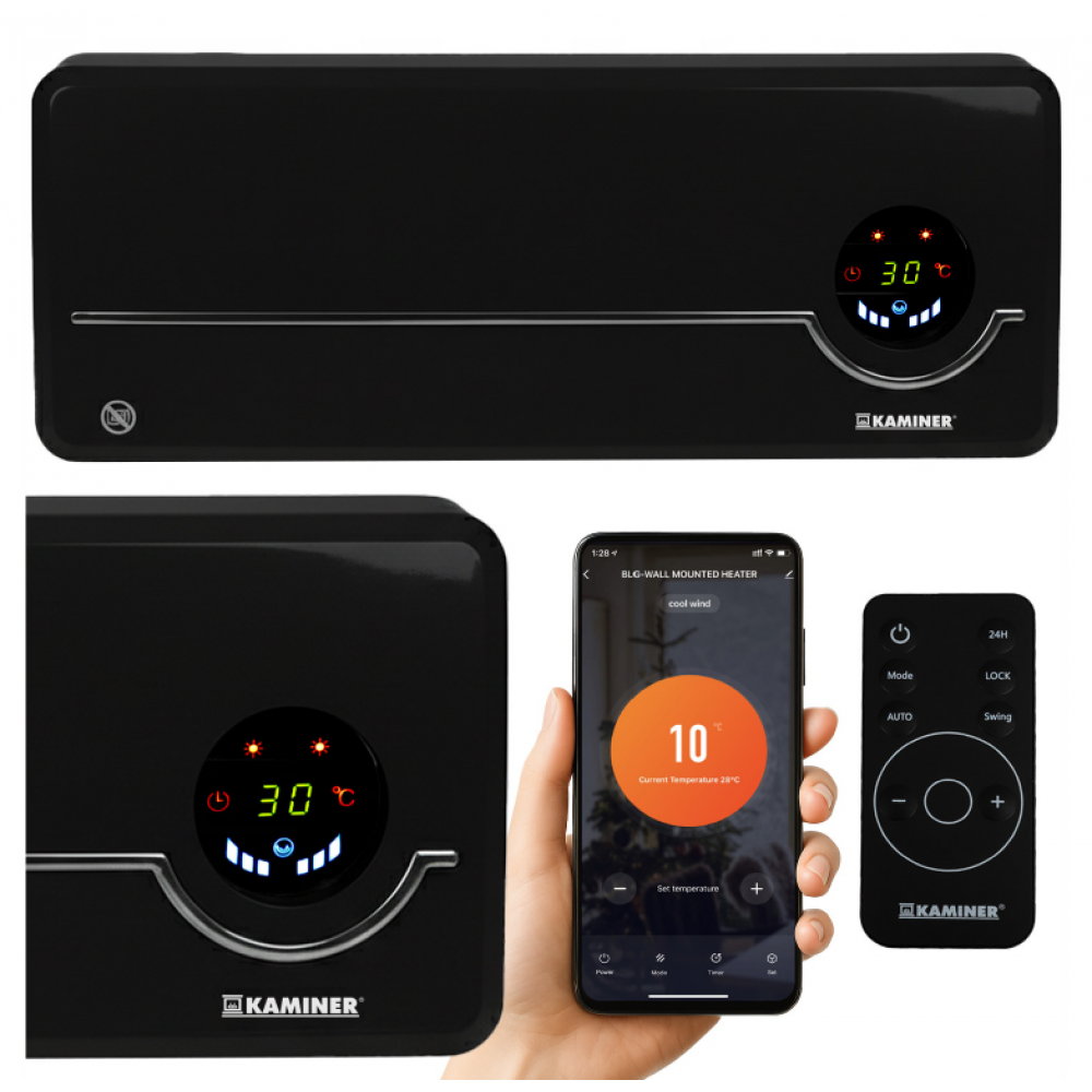 KAMINER AIRO gaisa aizkars, jaudīgs elektriskais sienas sildītājs ar WiFi + tālvadības pulti!