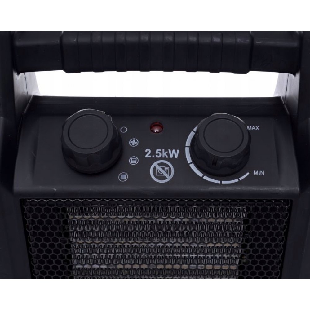 Sildītājam ir vienmērīga apkures temperatūras kontrole un iespēja izvēlēties darbību tikai ar ventilatoru, darbību ar pusi jaudas vai pilnu jaudu.