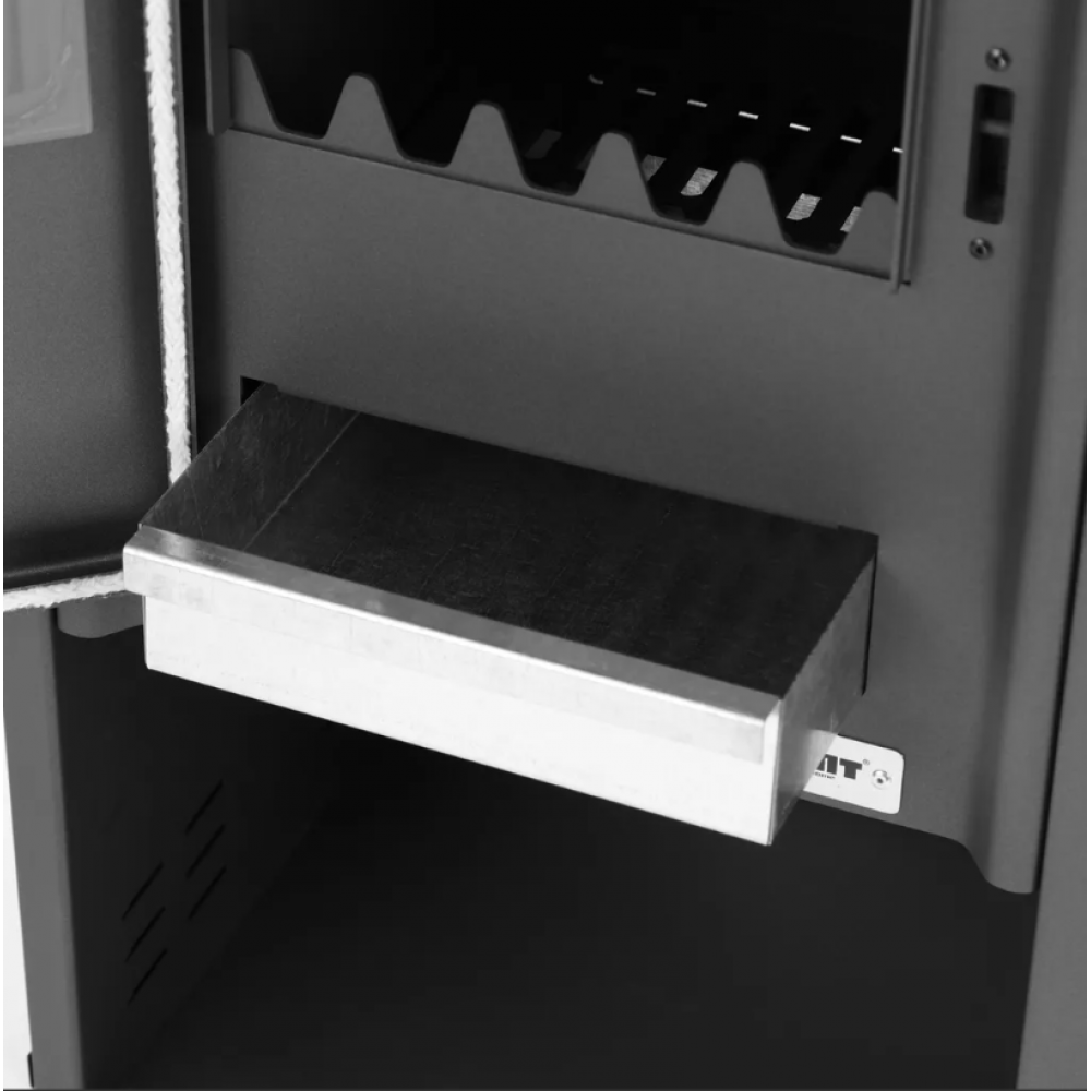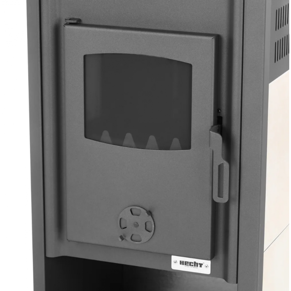 Tērauda malkas krāsns ar karstā ūdens apmainītāju un maksimālo siltuma jaudu 20–22 kW (ūdenī 15–17 kW).