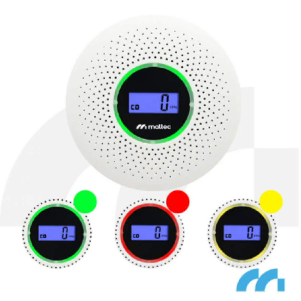 Aprīkots ar LCD displeju un mikroprocesoru, tas pastāvīgi rāda oglekļa monoksīda (CO) koncentrāciju ppm un dūmu līmeni (db/m).