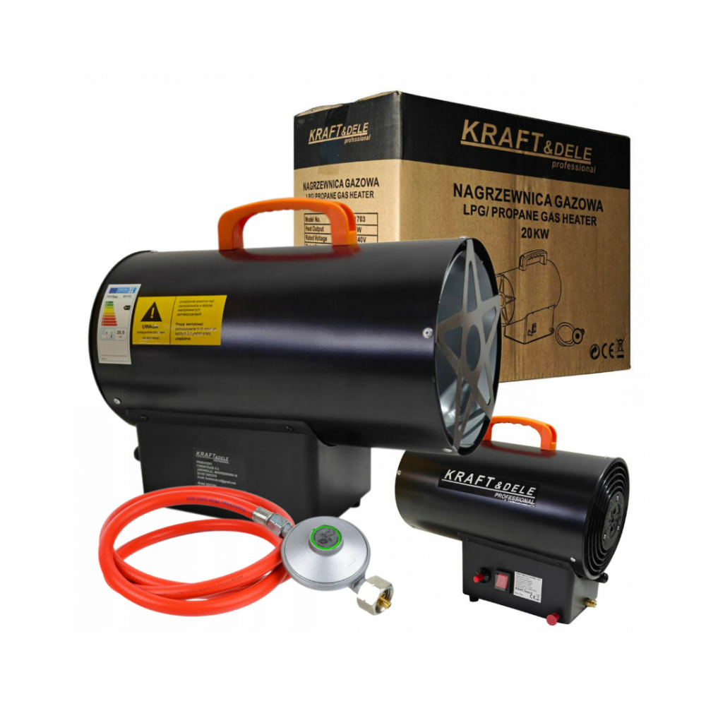 Пропан-бутановый (LPG) обогреватель Kraft & Dele , модель KD11703 , мощностью 20 кВт . Обогреватели Kraft & Dele — одни из лучших на рынке в своем ценовом диапазоне. Их высокая эффективность и максимальная экономия топлива (газа) обеспечиваются специальной конструкцией камеры сгорания.
