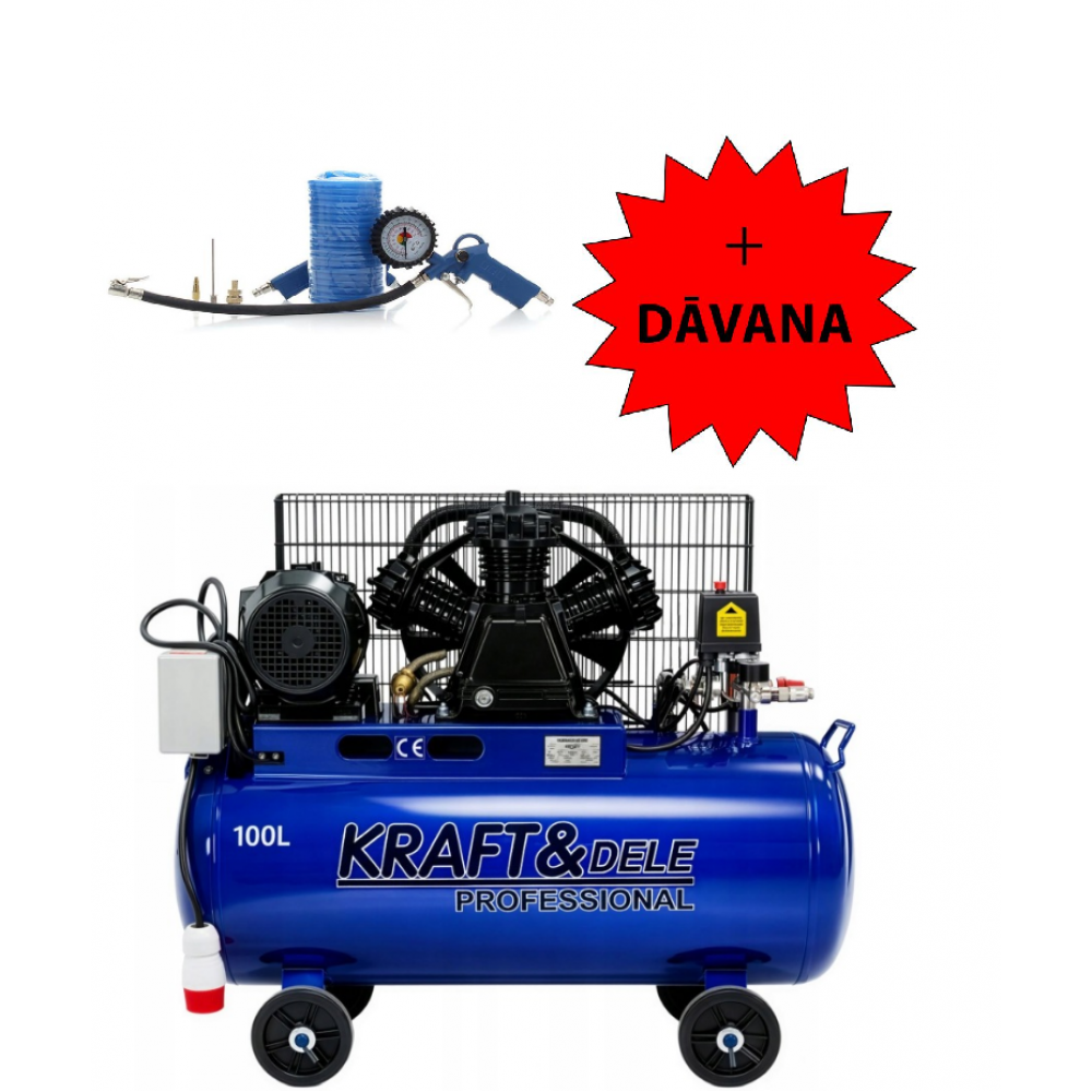 Noliktavā Ražotājs: Kraft&dele Germany Gaisa kompresors 24L, 230V + 8 elementu komplekts dāvanā no Kraft&dele (KD400 3K)-37.20€104.80€