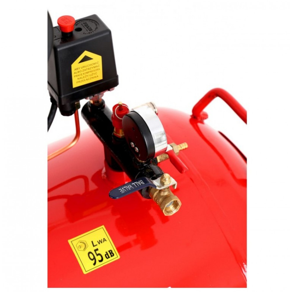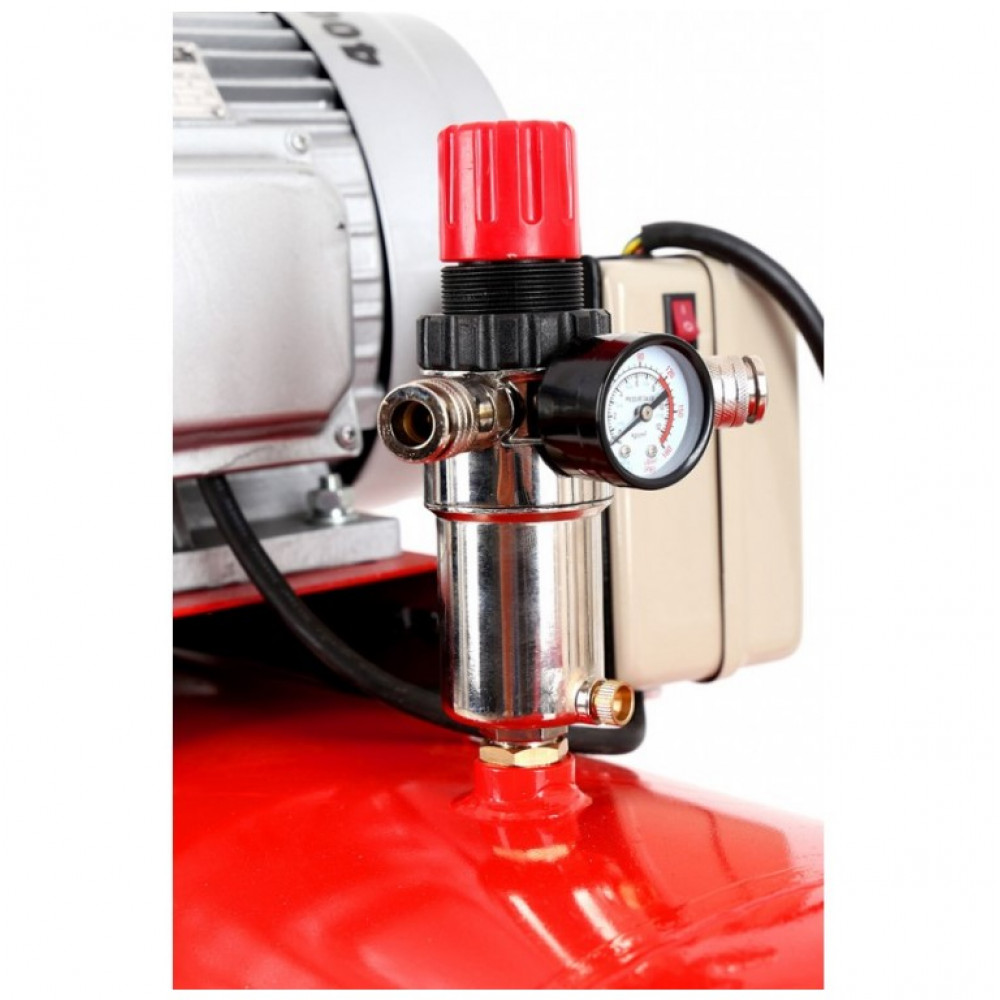 - Ergonomisks — tam ir spiediena reduktors, kas aprīkots ar inovatīvu regulēšanas mehānismu, liels spiediena mērītājs, kas atrodas uz kompresora tādā pozīcijā, kas atvieglo parametru nolasīšanu, un ērts iztukšošanas krāns.