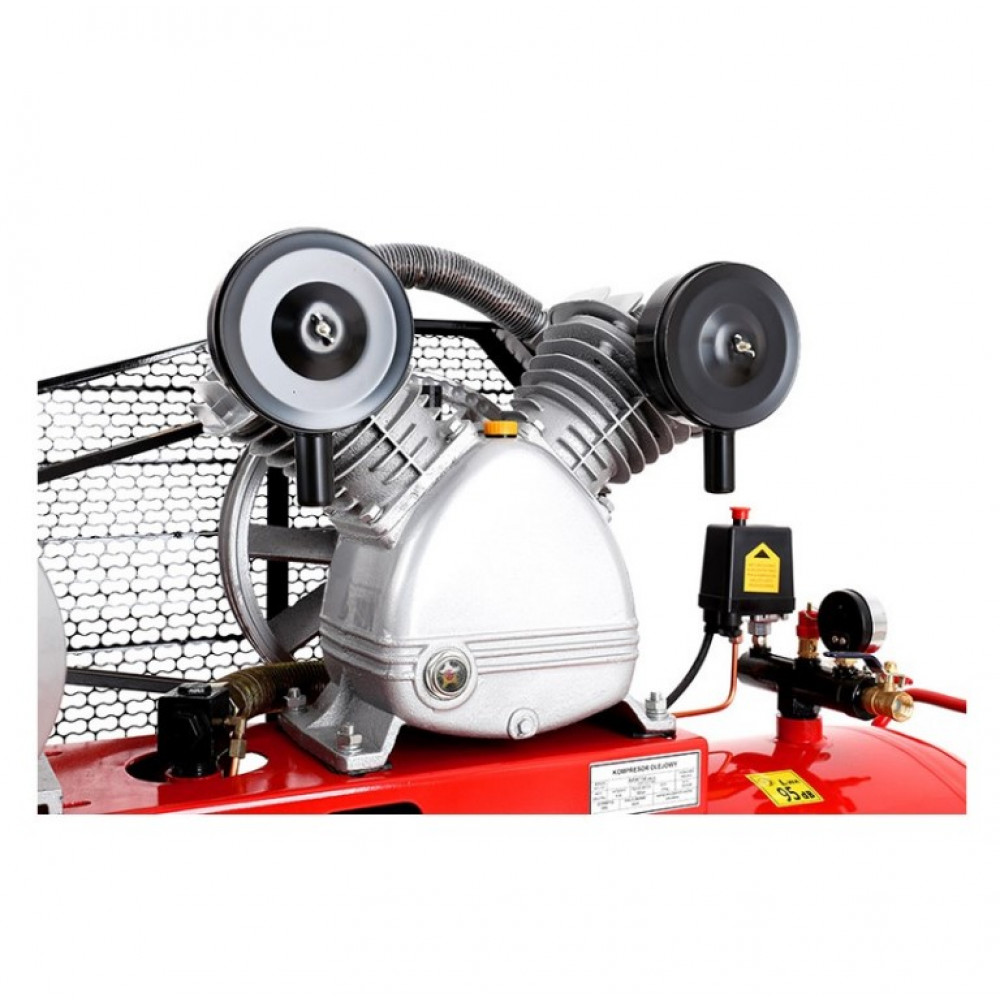 - Kompresoram ir 2 spēcīgi virzuļi, kas piemēroti ilgstošam un intensīvam darbam.