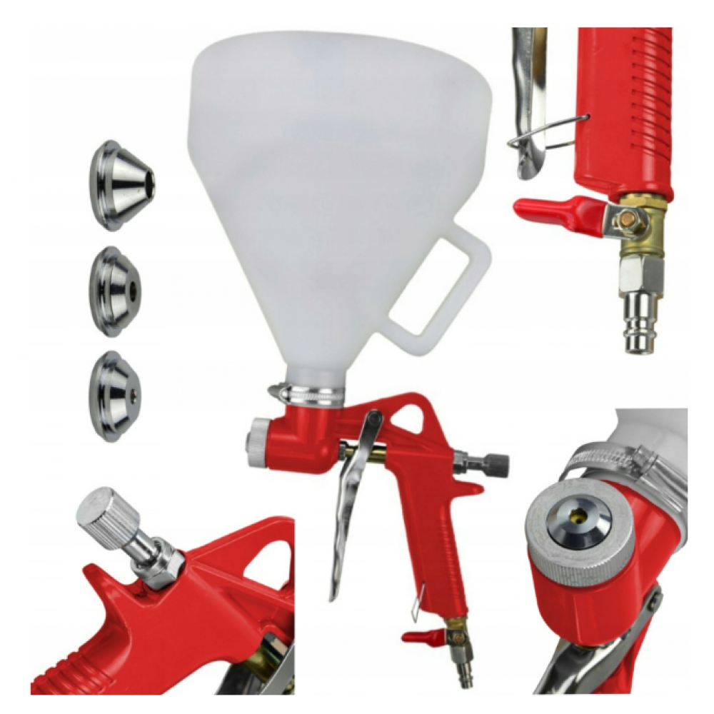 Universāls pneimatiskais pistole krāsošanai, apmešanai, ģipša apmešanai un smilšu strūklas apstrādei.