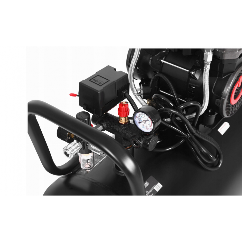 Благодаря двум двигателям мощностью 2200 Вт и максимальной производительности 585 л/мин компрессор обеспечивает быстрое наполнение пневмоинструментов и непрерывную работу. Прочная металлическая ручка и четыре больших колеса облегчают транспортировку. Два легко читаемых манометра, бесшумная работа (70 дБ) и защита от перегрузки обеспечивают комфорт и безопасность использования. Осушитель с редуктором давления позволяет точно контролировать подачу сжатого воздуха.