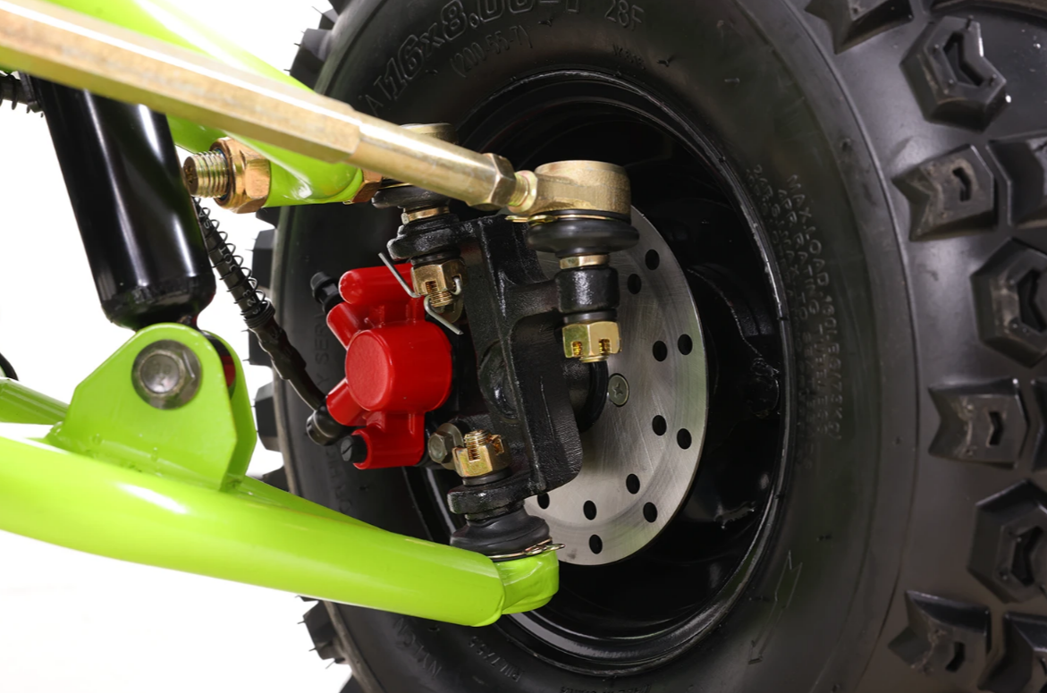 Priekšpusē mums ir jaudīgas trumuļa bremzes uz abiem riteņiem, kas nodrošina pietiekamu bremzēšanas spēku. Aizmugurē ir viena hidrauliskā bremze, kas uzstādīta uz ass.