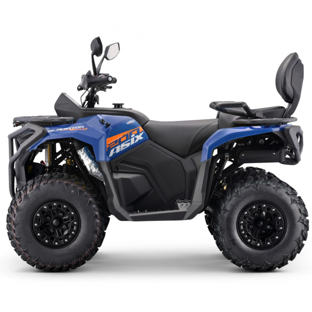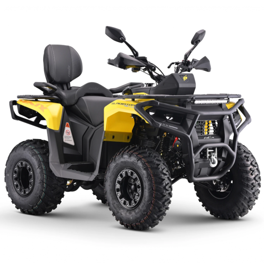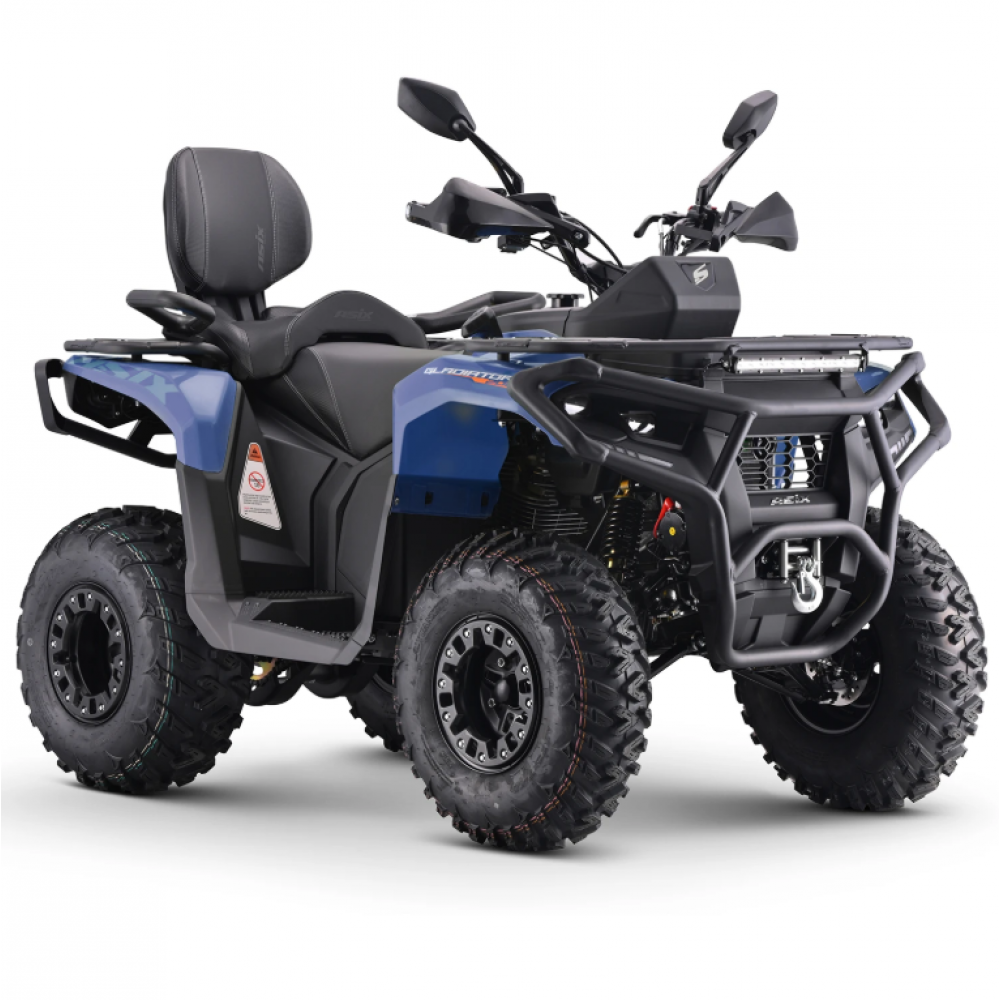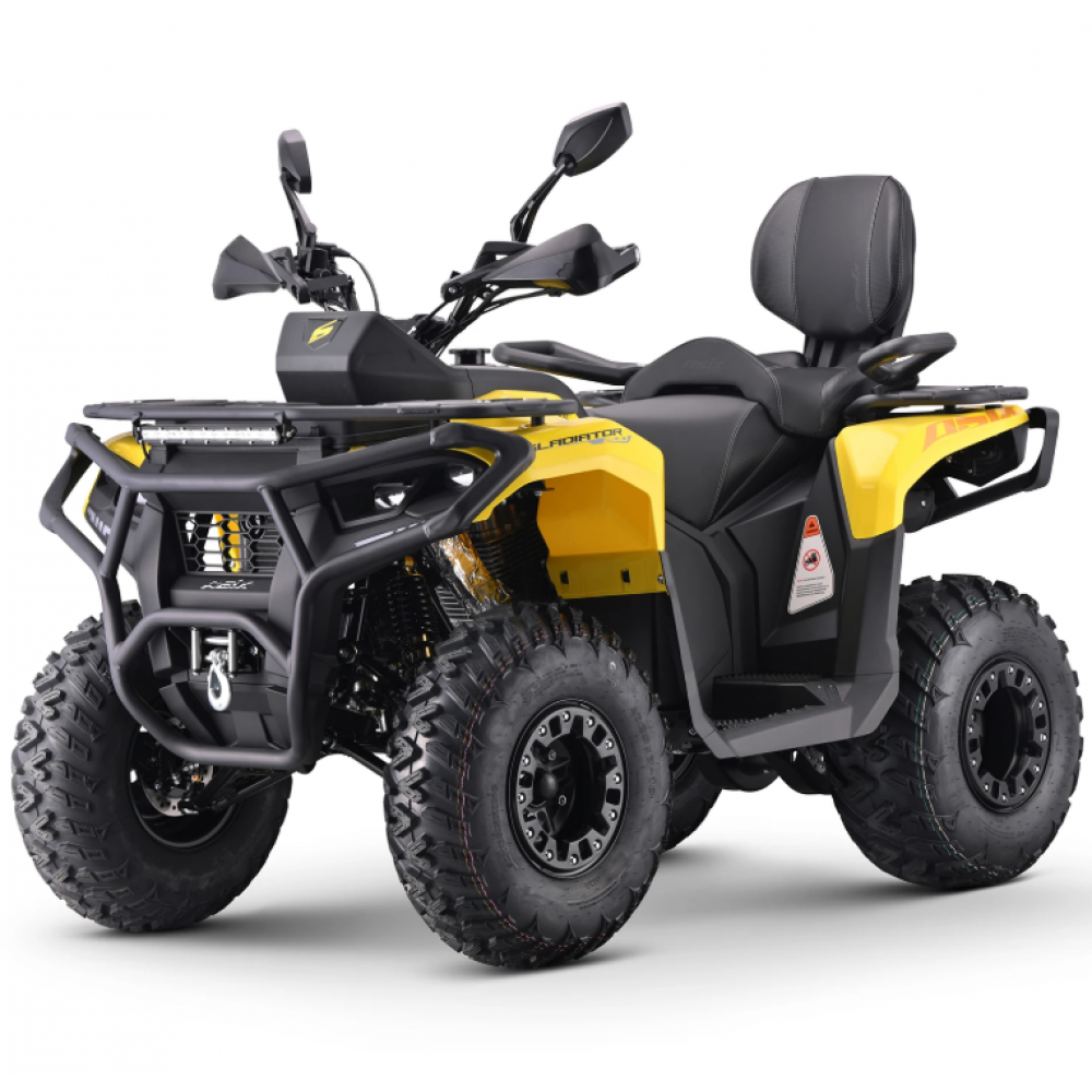 GLADIATOR ir bezceļu kvadracikls, kas nav paredzēts braukšanai pa ceļiem. Šo mašīnu darbina 196 kubikcentimetru četrtaktu LONCIN dzinējs. Šī zīmola dzinēji ir labi pazīstami gan bezceļu, gan šosejas braukšanas entuziastu vidū — nosaukums "LONCIN" uzreiz norāda uz uzticamu dzinēju! Dzinējs ir aprīkots ar balansēšanas vārpstu un eļļas dzesētāju. Šim modelim ir 10 collu riteņi ar bloķēšanas sistēmu. Kvadracikls ir aprīkots ar CVT automātisko pārnesumkārbu ar 1+1 atpakaļgaitas pārnesumu. Citas ievērojamas funkcijas ir 2000 mārciņu vinča, apsildāmi rokturi, USB un cigarešu šķiltavas pieslēgvietas, liels LCD displejs, pilns LED apgaismojums ar pagrieziena rādītājiem, LED gaismas josla, piekabes āķis, vibrācijas slāpēšanas sistēma, stundu skaitītājs, rokturus, pasažiera atzveltni ar rokturiem, aizslēdzamu glabāšanas nodalījumu uz priekšējā bagāžnieka, platu un ērtu atzveltni un skaņas signālu.