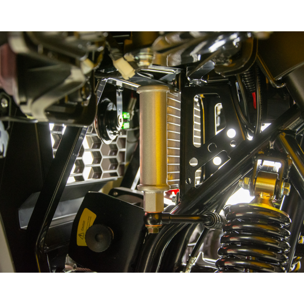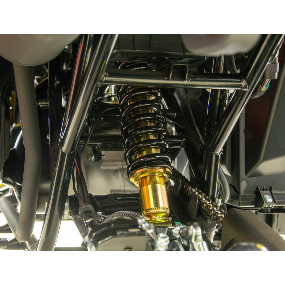 Spēcīgi, biezi un ar eļļu pildīti amortizatori priekšā un aizmugurē nodrošina lielisku saķeri, uzlabojot vilkmi. Vītņotie amortizatori ļauj veikt plašu amortizācijas regulēšanu.