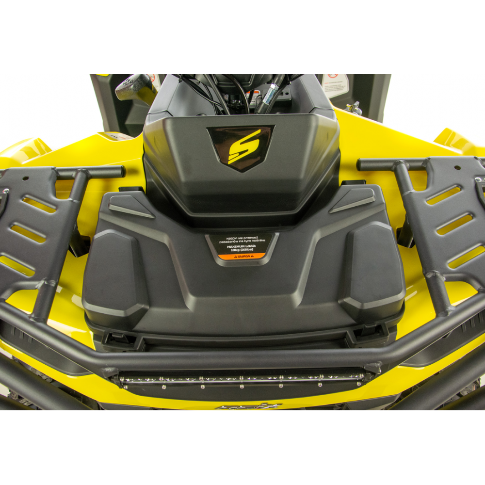 Platais, konturētais sēdeklis nodrošina ērtu braukšanu bezceļos gan vienatnē, gan kopā ar pasažieri. Pasažiera ērtībām ir iekļauta plata, ērta atzveltne, kas ievērojami uzlabo braukšanas komfortu divatā.