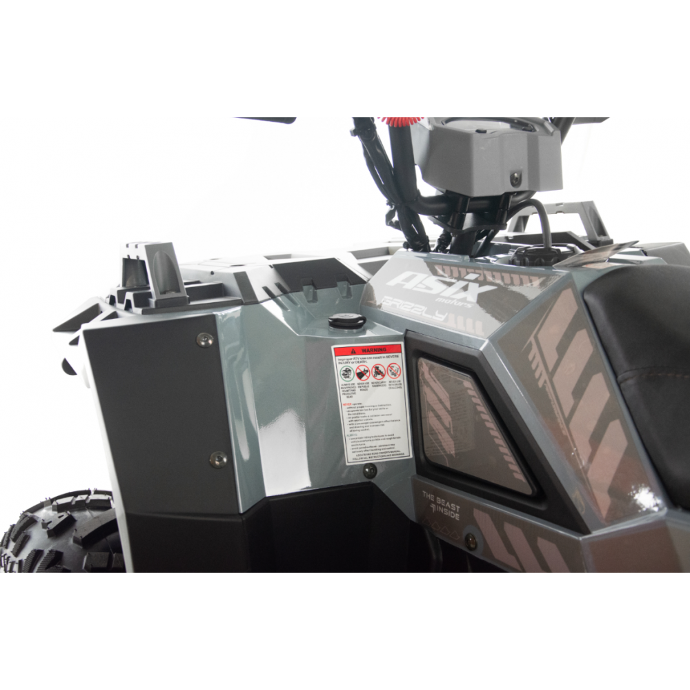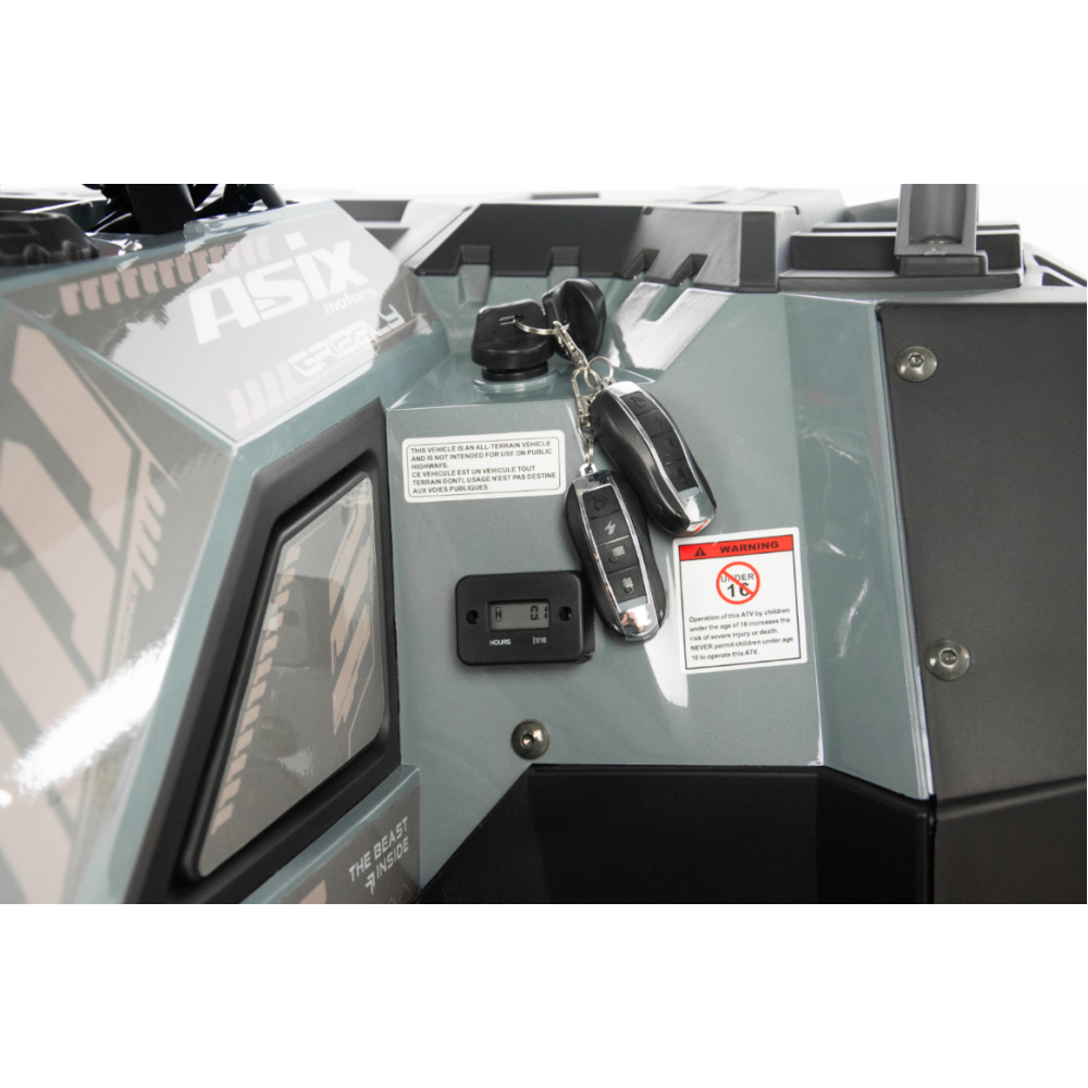 ASIX Grizzly kvadraciklu darbina 125 kubikcentimetru četrtaktu ZONSEN dzinējs. Tas ir paredzēts pusaudžiem. Tas ir aprīkots ar tādām funkcijām kā pilns LED apgaismojums, pagrieziena rādītāji, digitālais displejs, stundu skaitītājs, USB porti, vibrācijas slāpēšanas sistēma, hidrauliskās bremzes, margas, signāltaure, spoguļi un tālvadības pults.