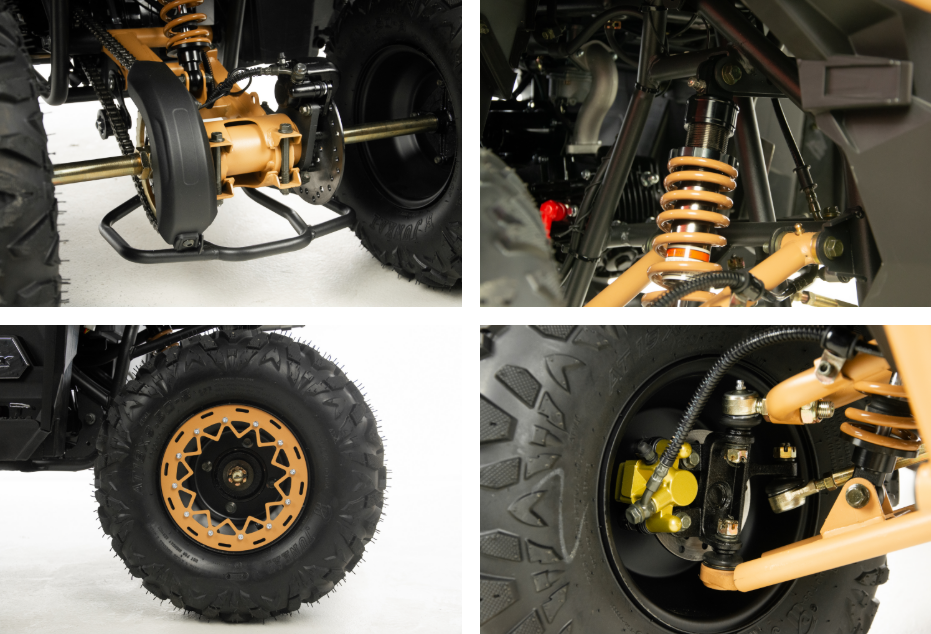 Piedziņas agregāts ir uzticams, četrtaktu ZONSEN 125cc dzinējs. Dzinējs ir dzesēts ar gaisu, nodrošinot efektīvu jaudas padevi un aizraujošu bezceļu braukšanas pieredzi.