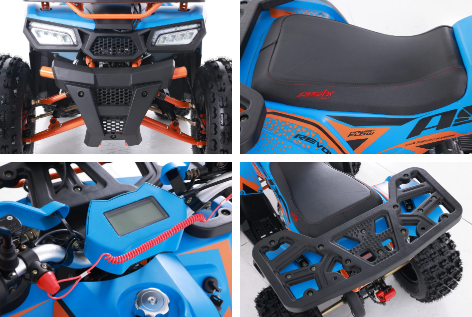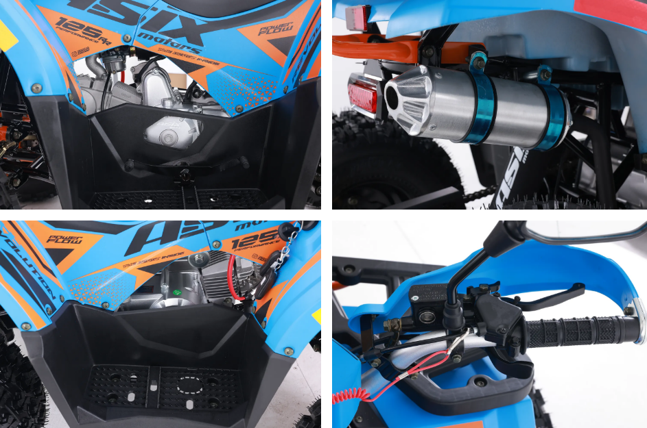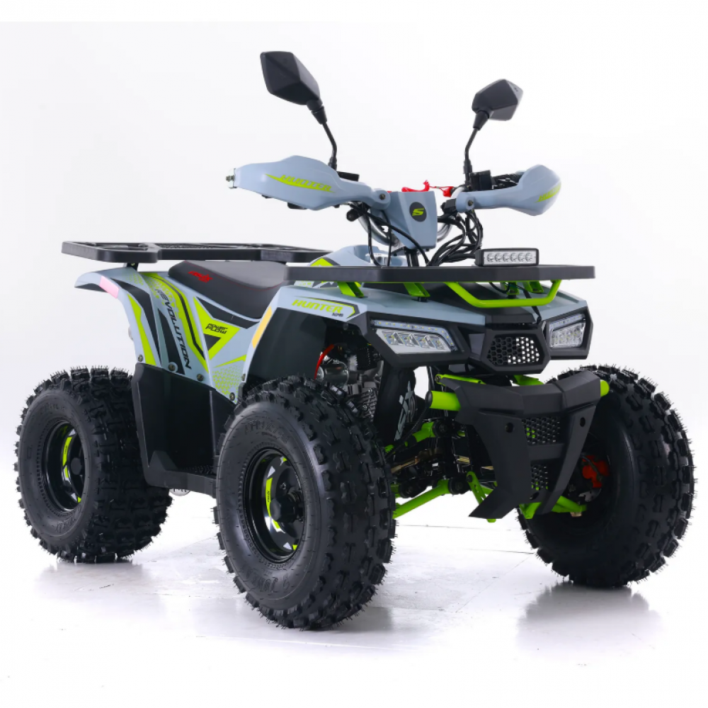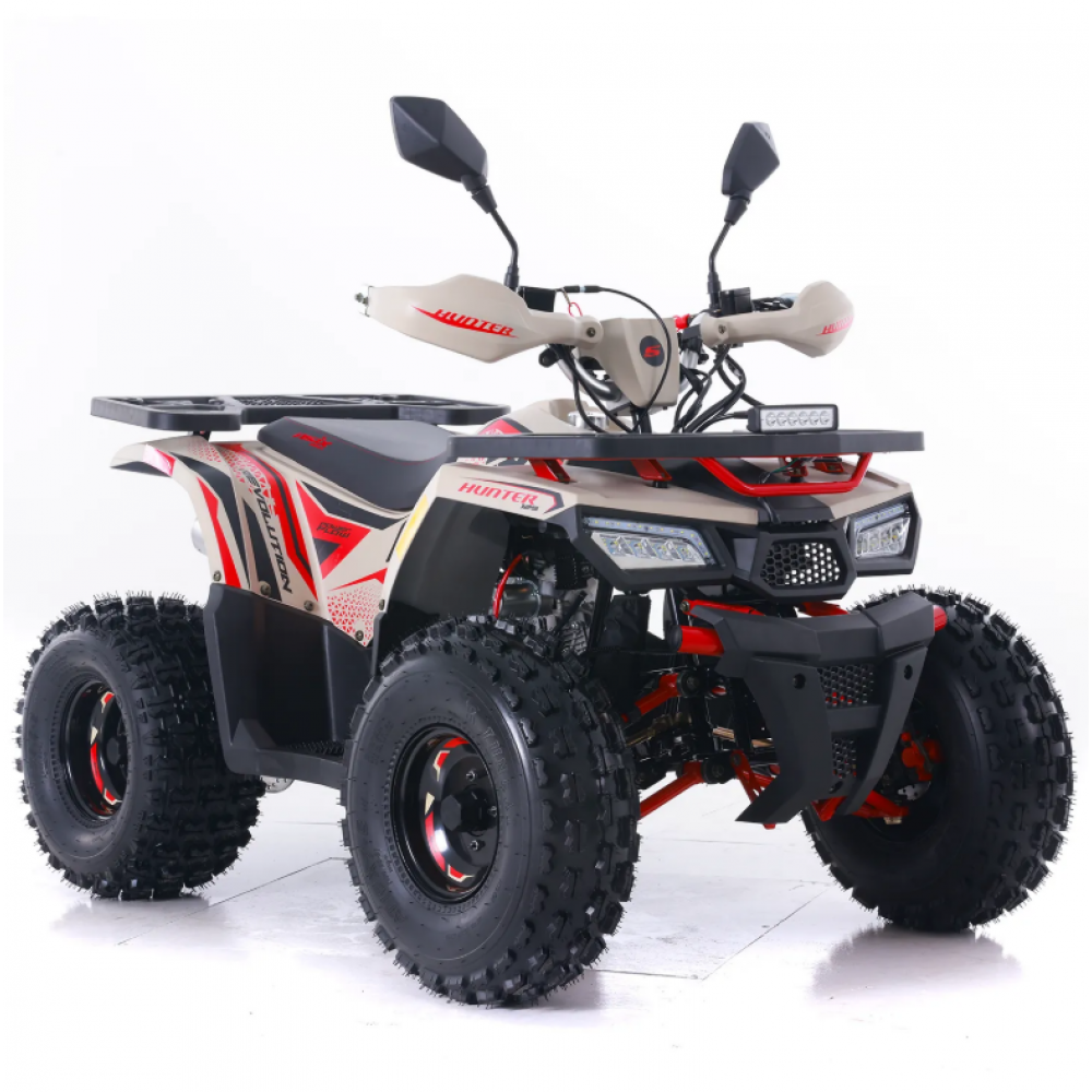HUNTER kvadracikls ir elektriskā iedarbināšanas transportlīdzeklis, ko darbina 125 kubikcentimetru četrtaktu dzinējs ar automātisko pārnesumkārbu un atpakaļgaitas pārnesumu. Šim apvidus kvadraciklam ir priekšējais un aizmugurējais LED apgaismojums, digitālais odometrs, spoguļi, drošības atvienošanas ierīce, ātruma kontrole un izturīga piekare uz 8 collu riteņiem.