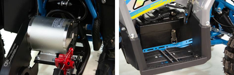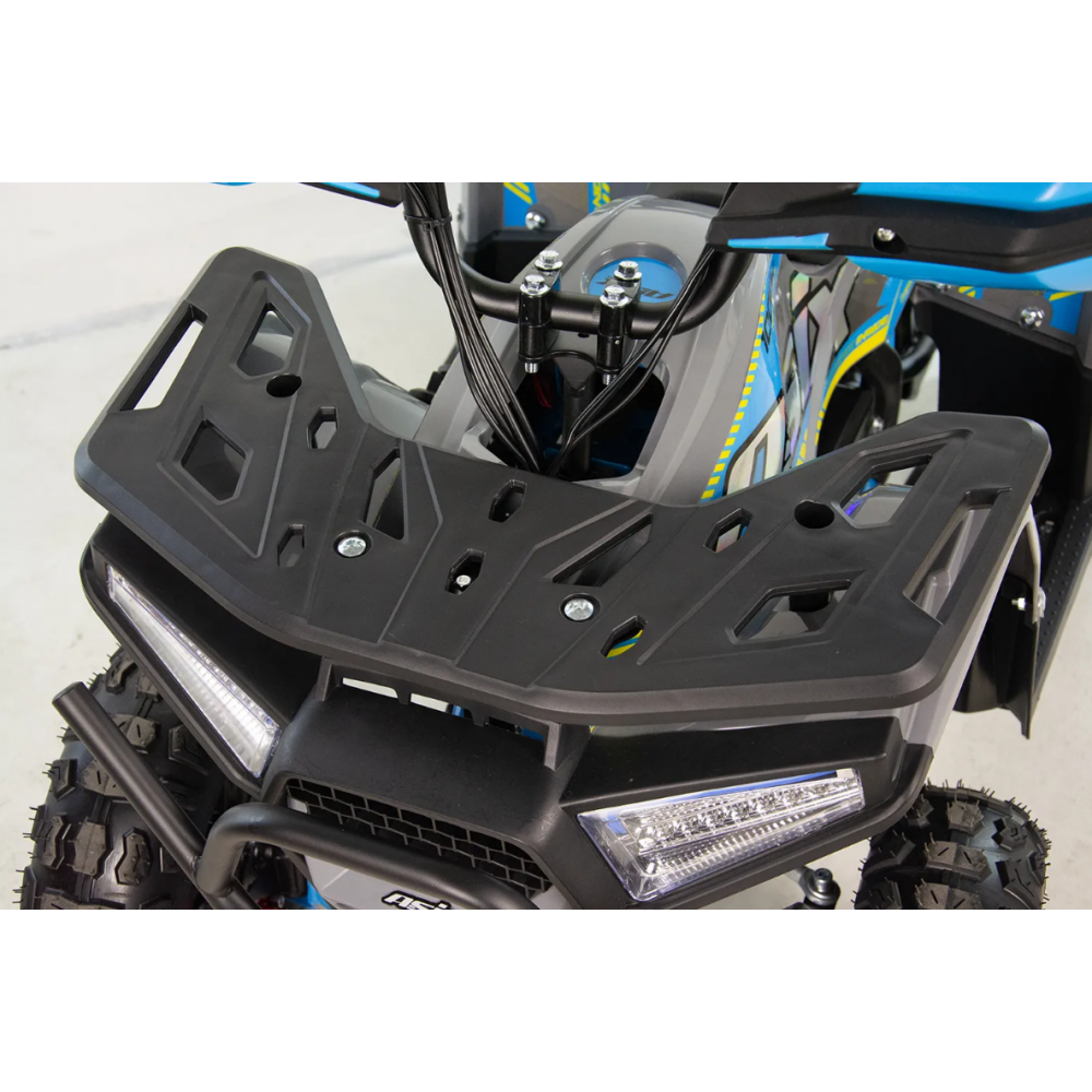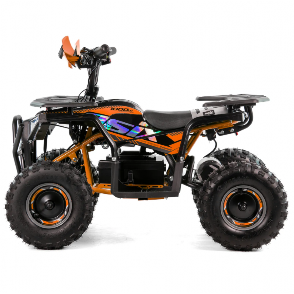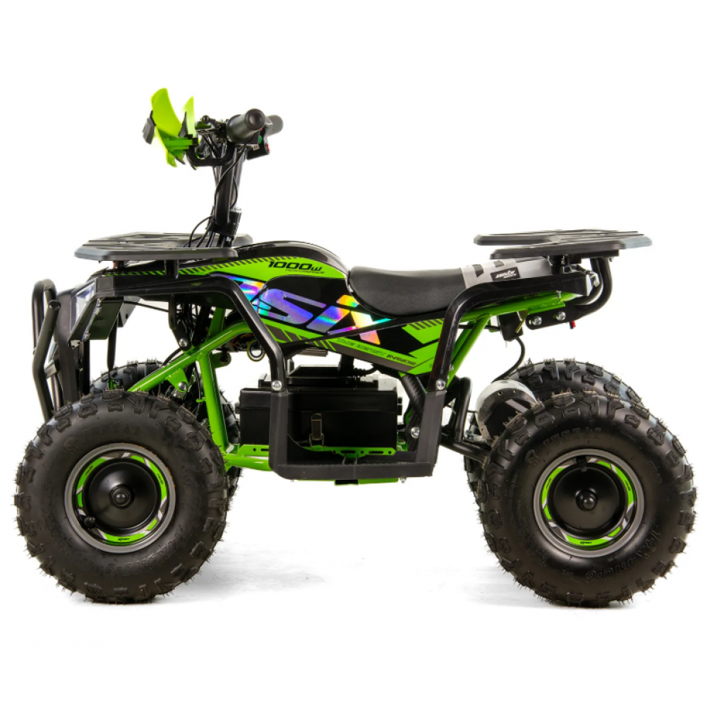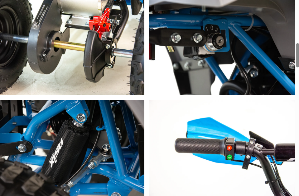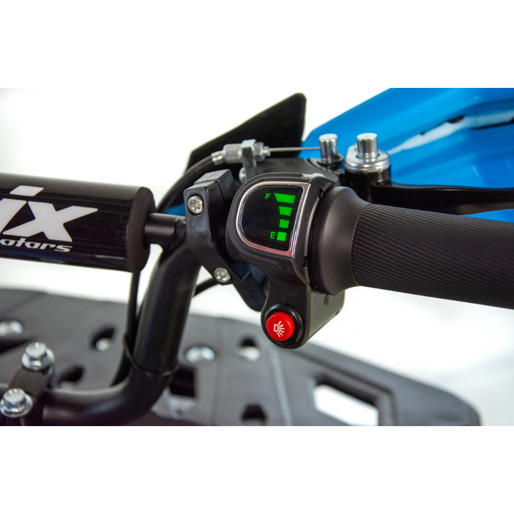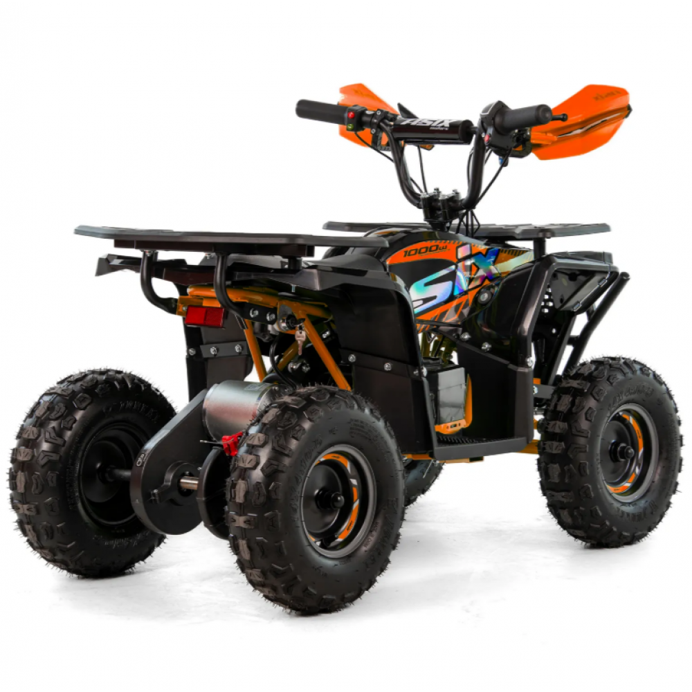 ASIX E-M10 mini kvadraciklu darbina 1000 W bezsuku elektromotors. Transportlīdzeklim ir 3 ātrumu ātruma kontrole ar atslēgas palīdzību darbināmu aizdedzi. Šis apvidus kvadracikls ar atpakaļgaitas pārnesumu ir piemērots bērniem vecumā no 3 līdz 8 gadiem. Tas brauc uz lieliem 6 collu riteņiem un ir aprīkots ar priekšējo LED apgaismojumu, margām, priekšējiem un aizmugurējiem bagāžniekiem ar īpašiem pārsegiem un skaņas signālu.