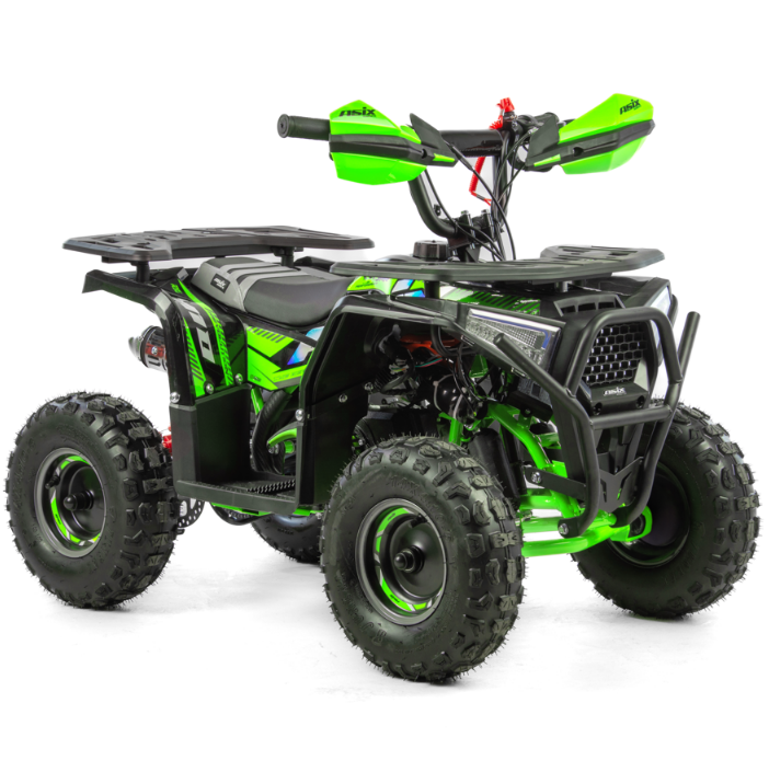 Мини-квадроцикл ASIX оснащен надежным 49-кубовым двухтактным двигателем. Это идеальный вариант для знакомства детей с ездой по бездорожью. Запуск прост: достаточно использовать электростартер или специальный стартер-запускатель.