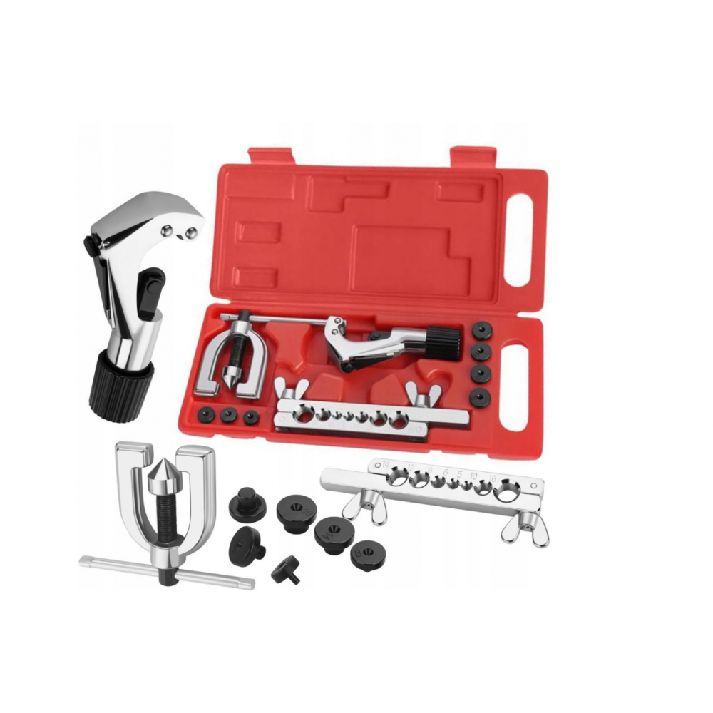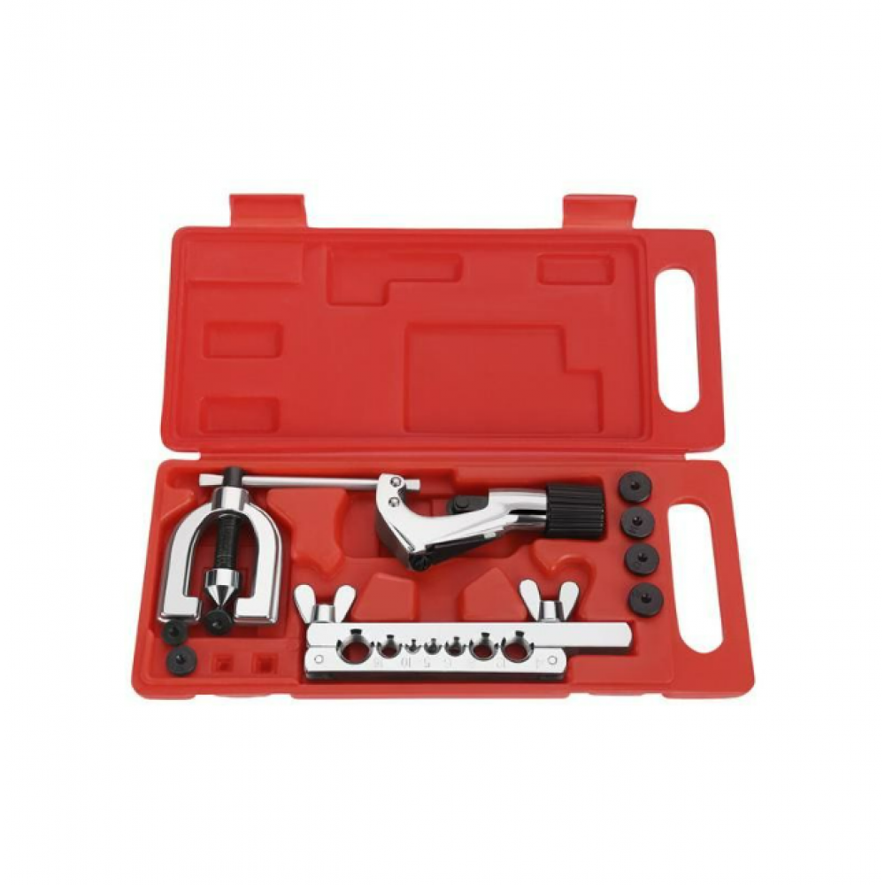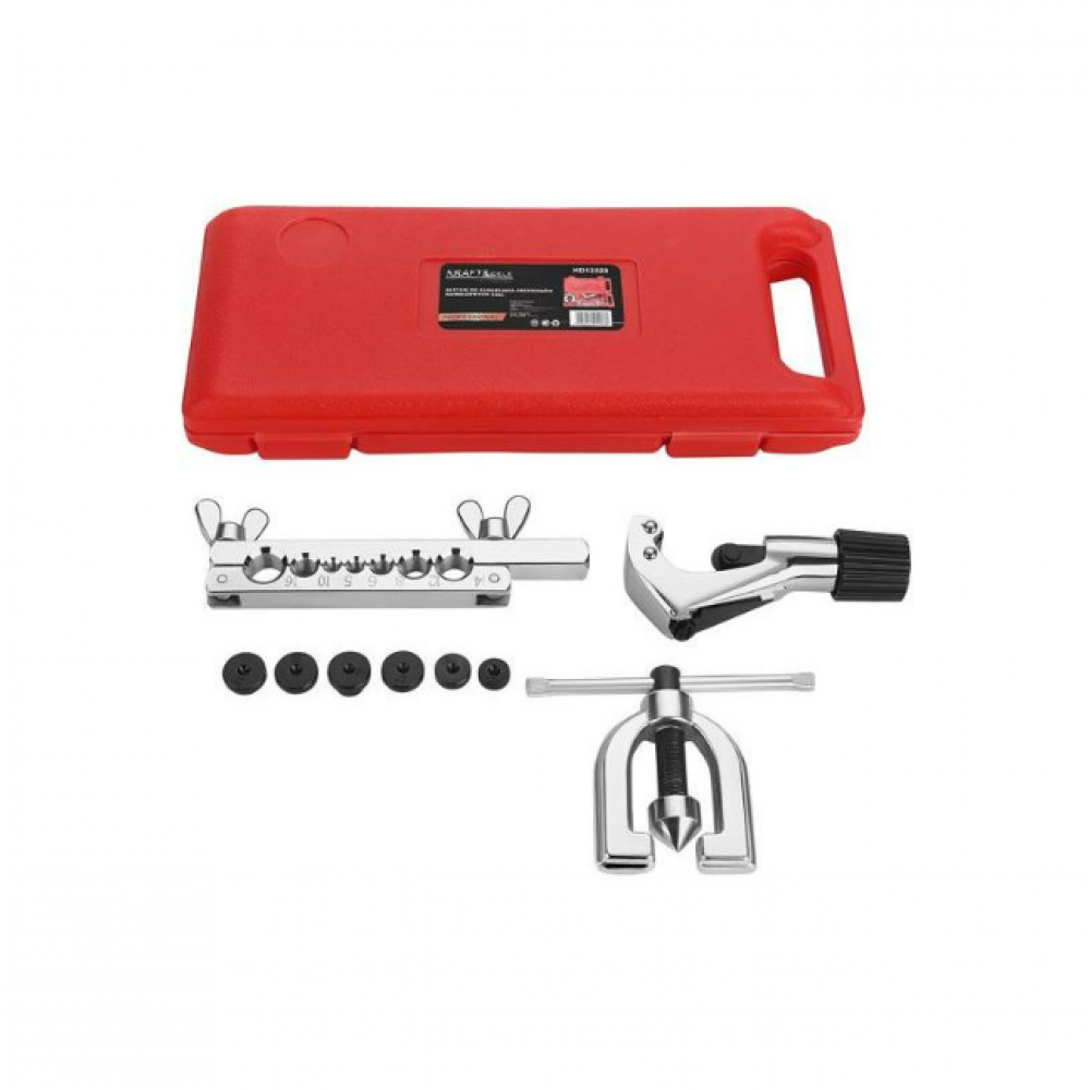 Профессиональный набор для развальцовки тормозных трубок KD12528 от Kraft & Dele — незаменимый инструмент в каждой автомастерской и гараже автолюбителя. Он позволяет точно развальцевать концы тормозных трубок для подготовки их к сборке.