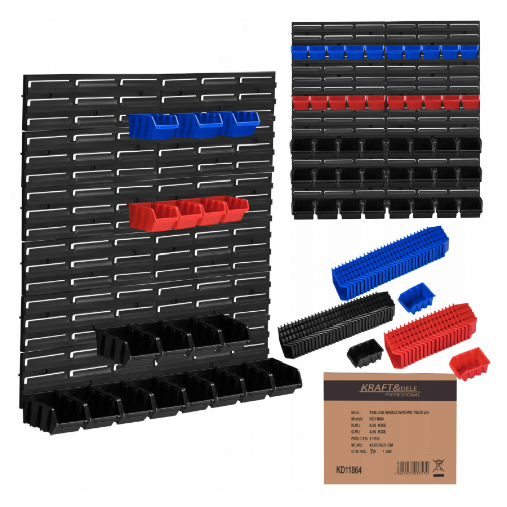 Доска для хранения KRAFT&DELE KD11864 Workshop Bin Board — это практичный набор, позволяющий удобно хранить, сортировать и организовывать различные мелкие предметы. Благодаря множеству ячеек разных размеров, у каждого предмета есть своё место, что позволяет легко поддерживать порядок в мастерской, гараже или на складе.
