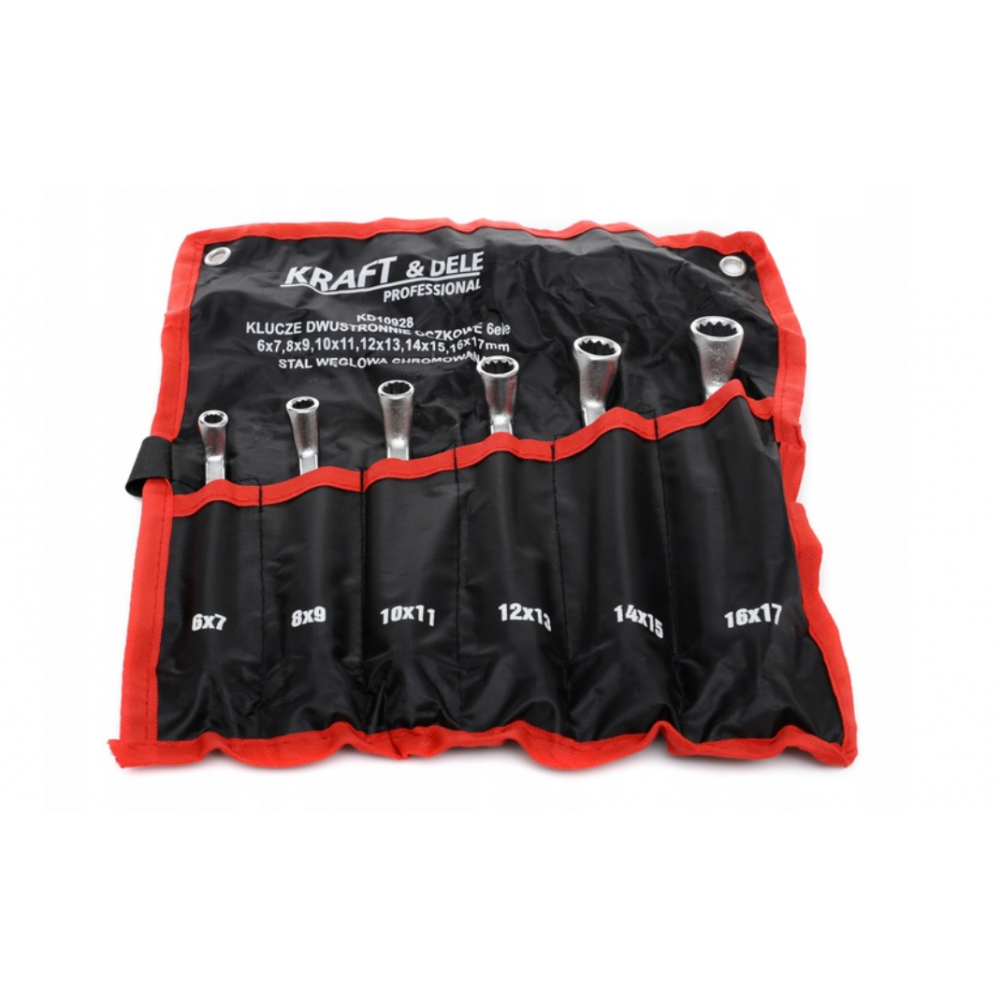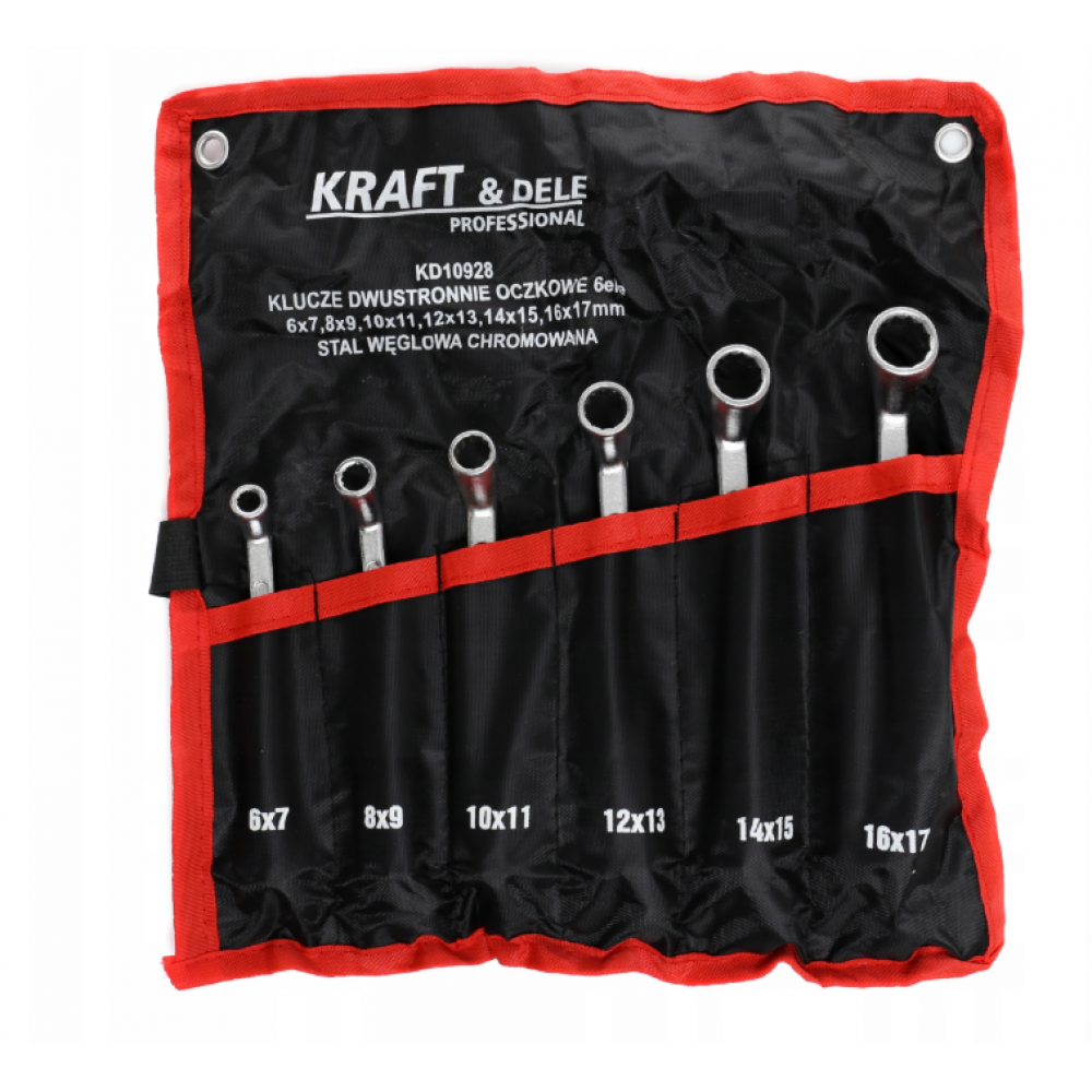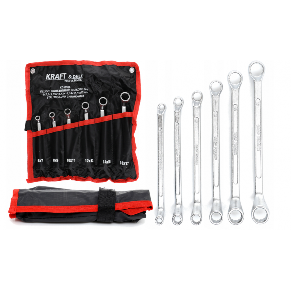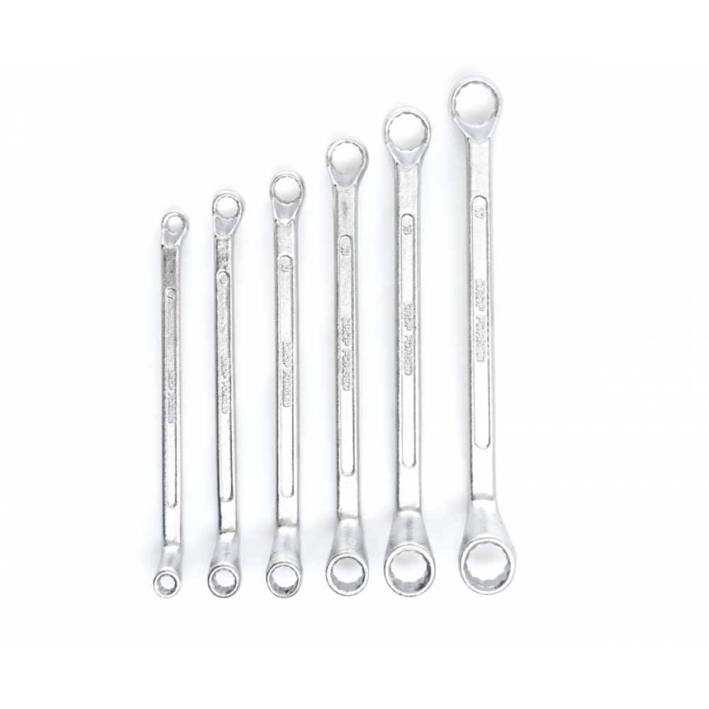 Profesionāls, 6 daļu gredzenatslēgu komplekts dažādos izmēros. Izgatavots no augstas kvalitātes hromēta oglekļa tērauda.