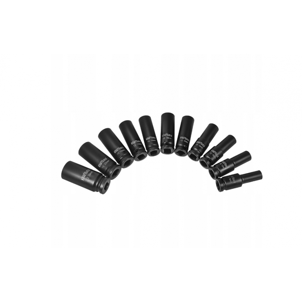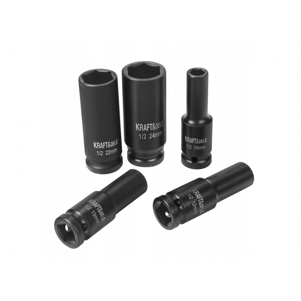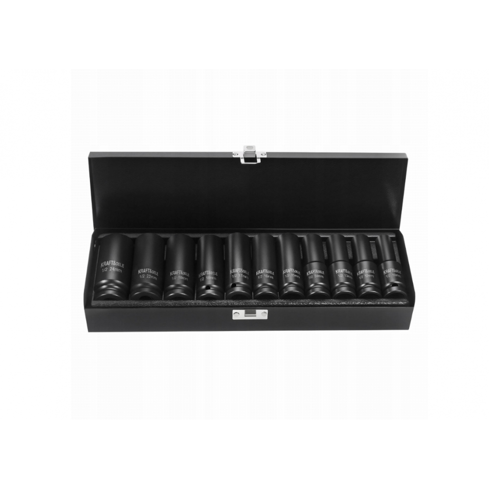 Profesionāls triecienatslēgu komplekts no KRAFT&DELE, kas ir ideāli piemērots darbam ar pneimatiskajiem un elektriskajiem triecienatslēgām. Komplektā ietilpst 11 populārākie izmēri, padarot to ideāli piemērotu gan autoservisiem, gan garāžu remontam. Uzgaļi ir izgatavoti no izturīga hroma-molibdēna (Cr-Mo) tērauda, kas ir izturīgs pret lielām slodzēm un intensīvu lietošanu.
