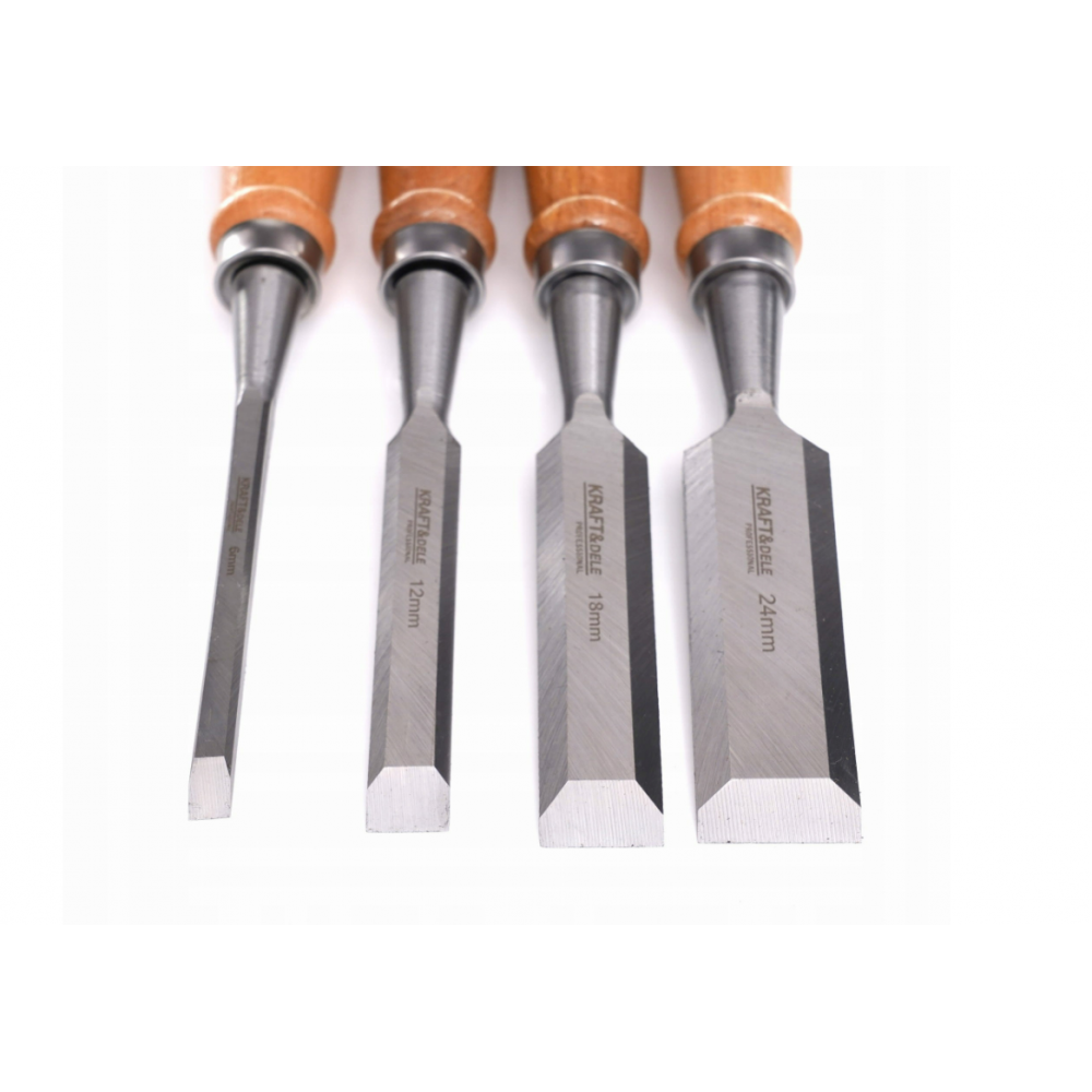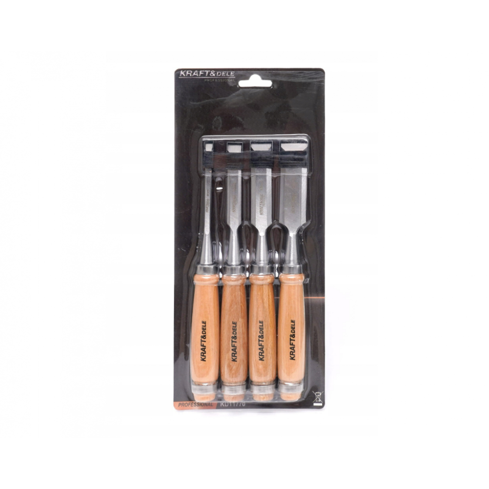 4 profesionālu galdniecības kaltu komplekts no KRAFT&DELE, modelis KD11770 . Paredzēts kokapstrādei, tostarp griešanai, grebšanai u.c.