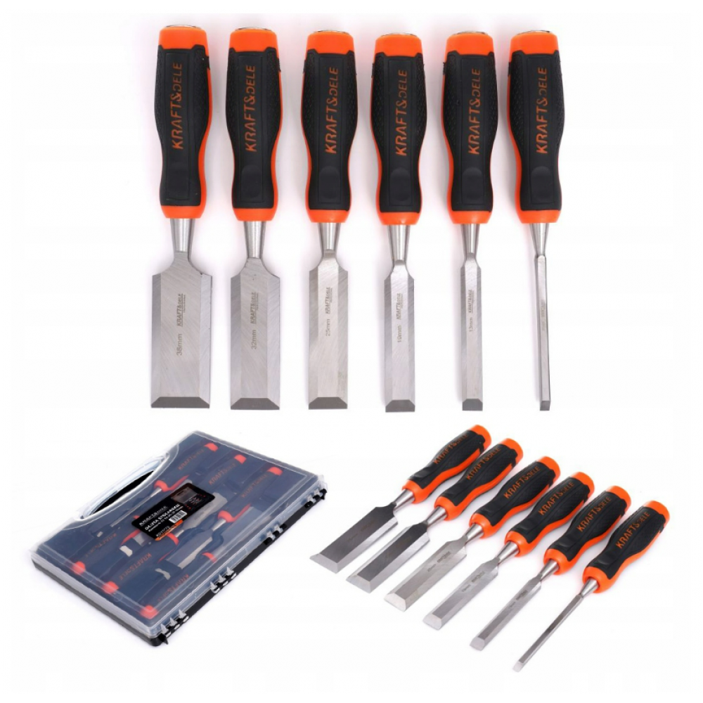 6 profesionālu galdniecības kaltu komplekts no KRAFT&DELE, modelis KD11772 . Paredzēts kokapstrādei, tostarp griešanai, grebšanai u.c.