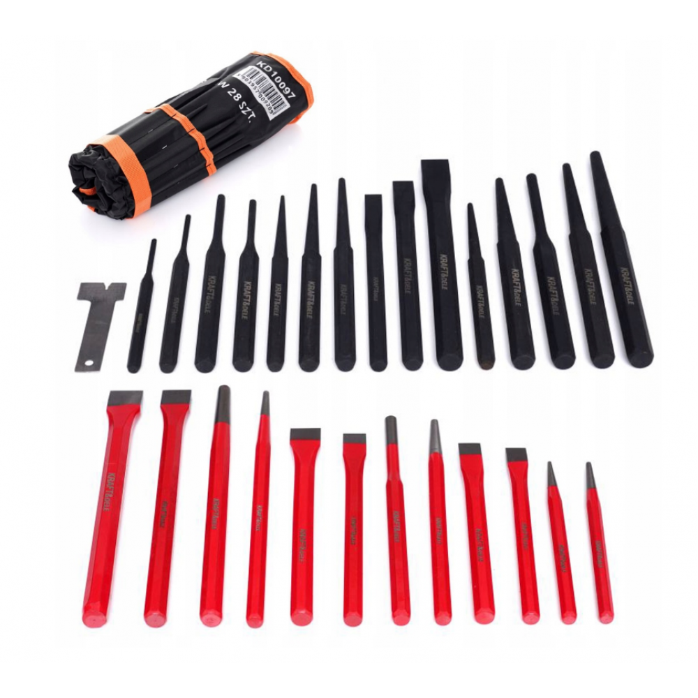 Profesionāls perforatoru, kaltu un urbju komplekts no Polijas zīmola Kraft&Dele, atsauces numurs KD10097. Izgatavoti no augstas kvalitātes tērauda, tie nodrošina ilgu kalpošanas laiku.