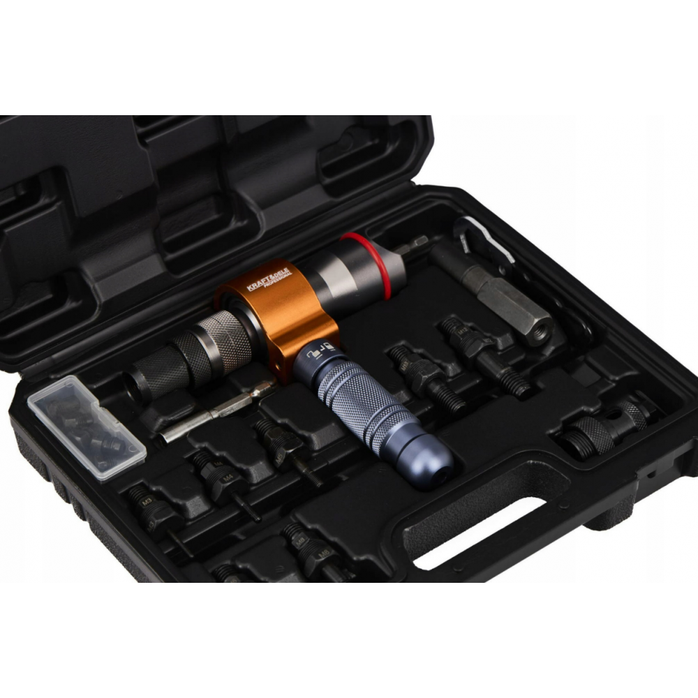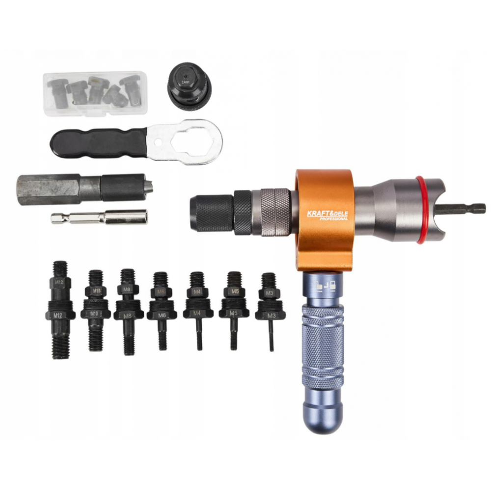 Profesionālā 3-in-1 Kraft&Dele kniedēšanas pistole ar adapteri kniedēšanas uzgriežņiem un kniedēm ir inovatīvs instruments, kas paredzēts, lai nodrošinātu ātru un uzticamu elementu savienošanu plašā pielietojumu klāstā.