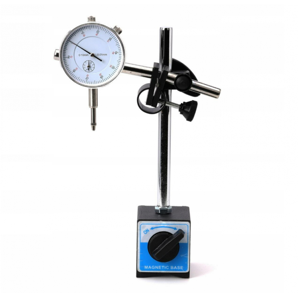 Kontakta punkts uztver mazāko novirzi, ko reģistrē skalas mērierīce. Šarnīrveida statīvs ar magnētisko pamatni nodrošina labāku izlīdzināšanu un lielāku precizitāti.