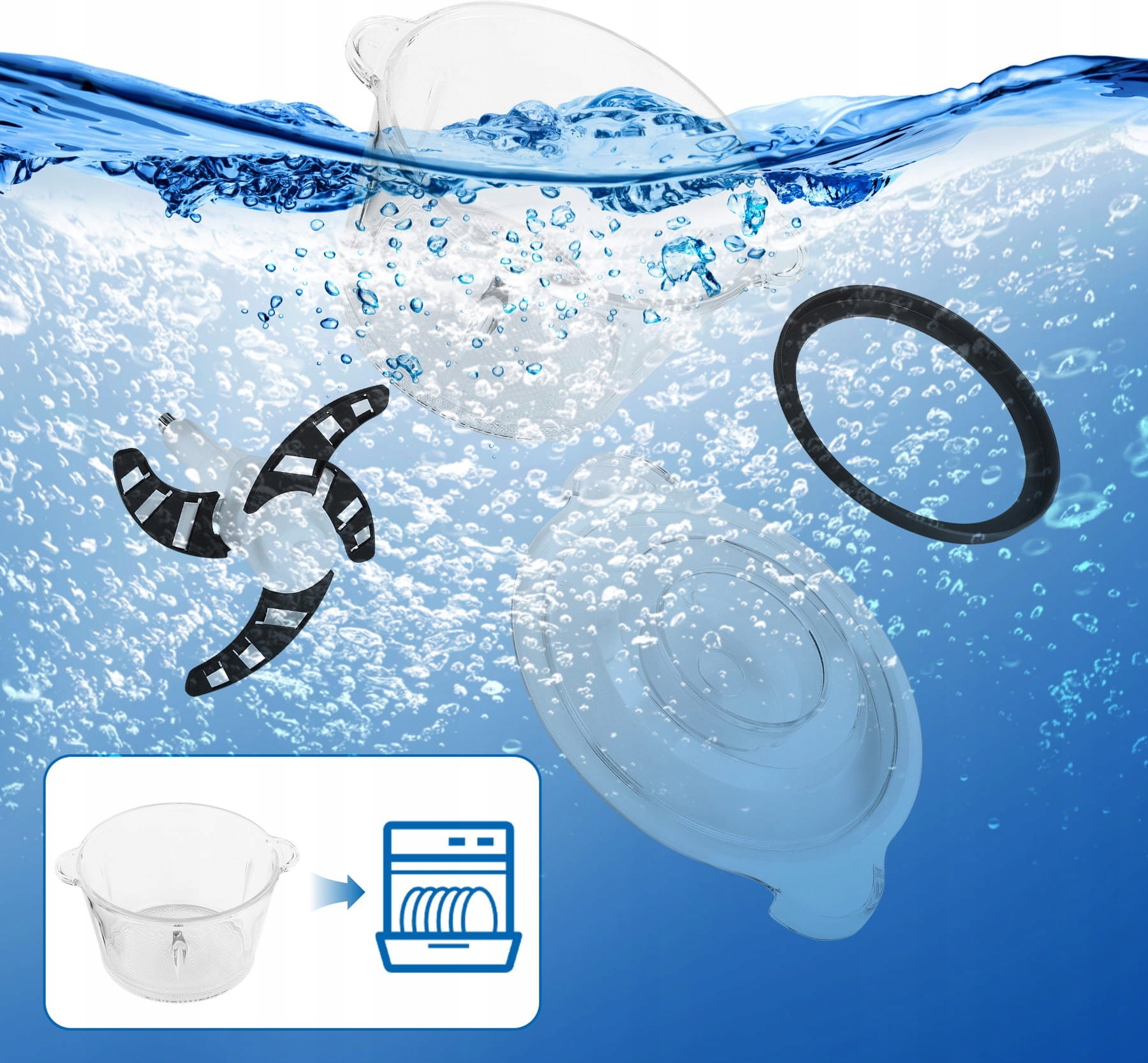 Caurspīdīgā 2 litru bļoda ļauj ērti uzraudzīt gatavošanas procesu, savukārt stabilā pamatne un drošības sistēma novērš nejaušu ieslēgšanos, palielinot drošību. Tās kompaktie izmēri un vienkāršā sastāvdaļu demontāža padara ierīci viegli tīrāmu un uzglabājamu.