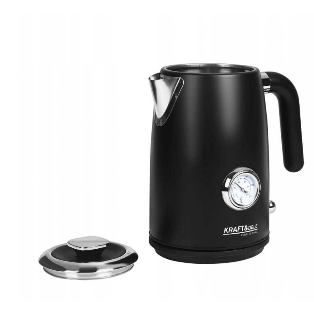 KRAFT&DELE KD4153 elektriskā tējkanna ļauj ātri, ērti un droši uzvārīt ūdeni. Ar 1 litra ietilpību tā ir lieliski piemērota jebkurai mājai vai birojam, un temperatūras mērītājs ļauj uzraudzīt verdošā ūdens temperatūru.