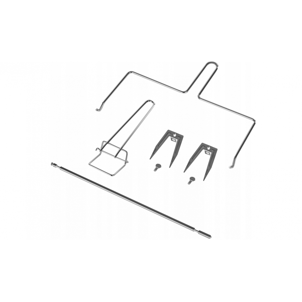 ✅ Daudzpusīgs piederumu komplekts: grila režģis, paplāte, turētājs un iesma dakša