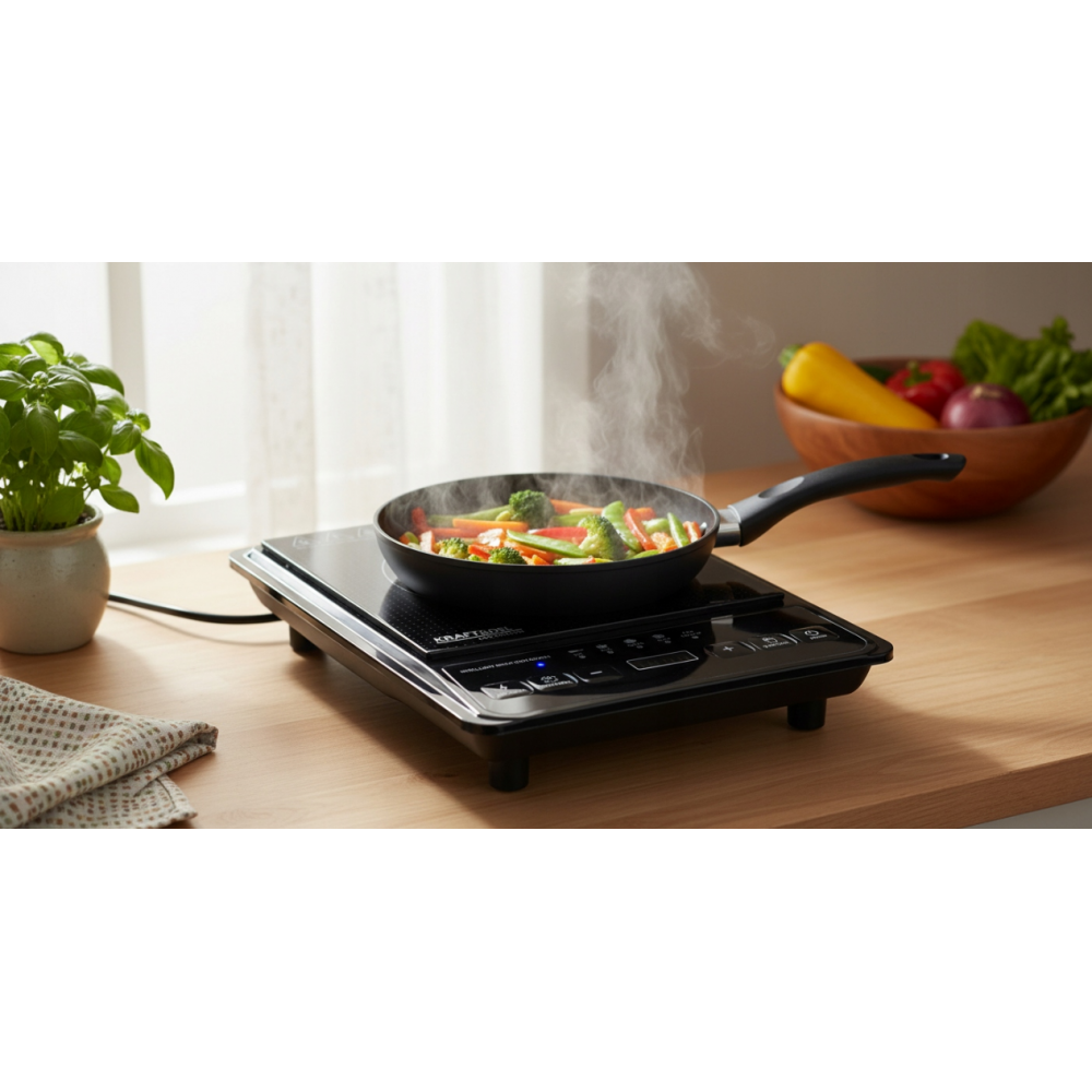 ✅ Augsta energoefektivitāte: Indukcijas tehnoloģija tieši uzsilda virtuves piederumus, samazinot siltuma zudumus un uzturot plīts virsmas apakšu vēsu (drošība!).