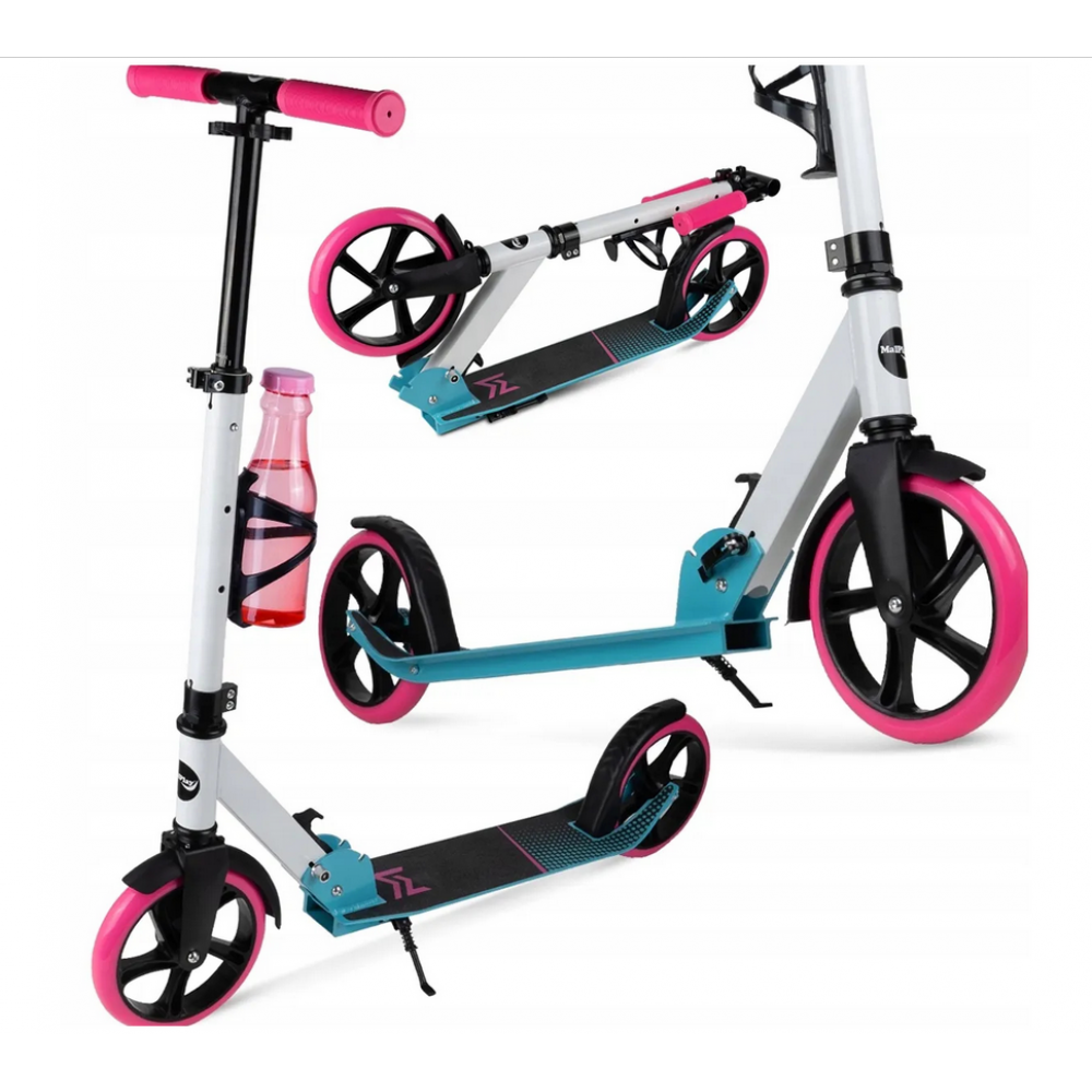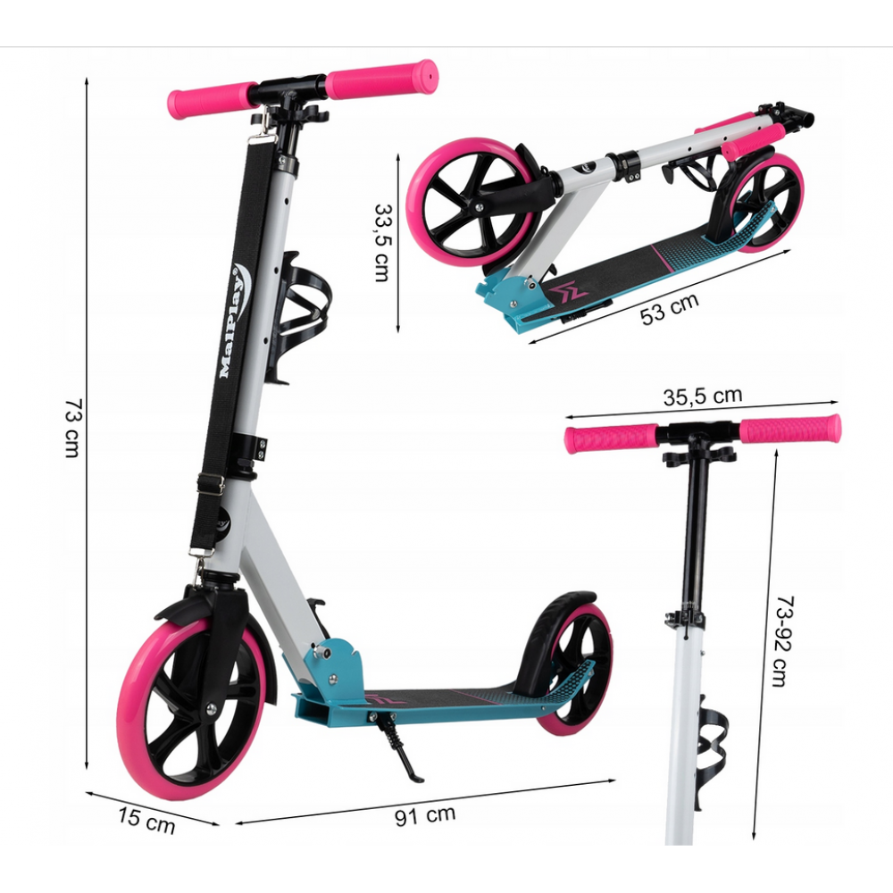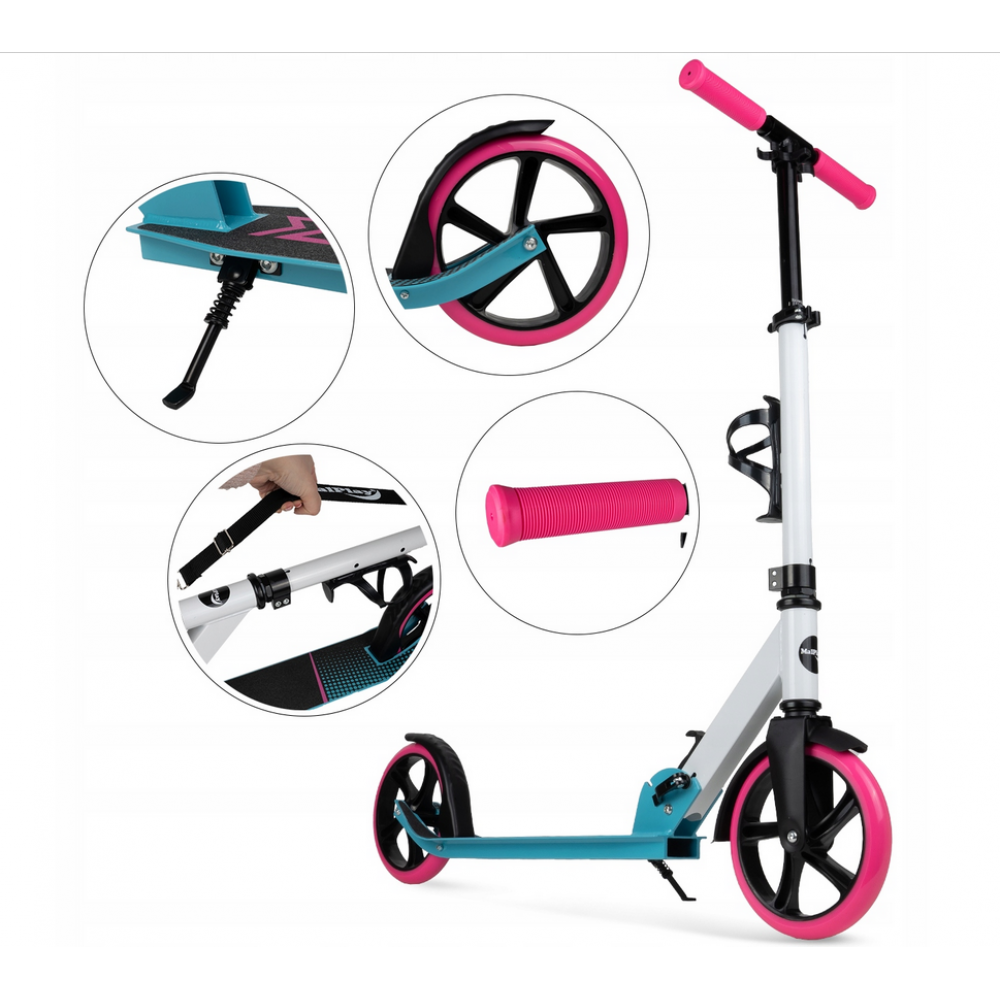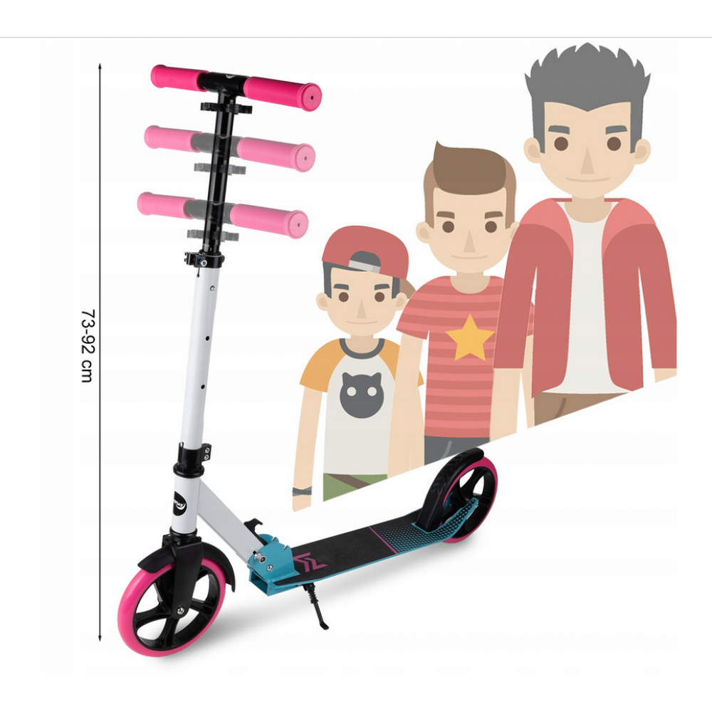 - Salokāms skrejritenis lieliem pilsētas riteņiem ar regulējamām bremzēm 200 mm, 100 kg, ABEC-7, krāsa balta, zila, rozā