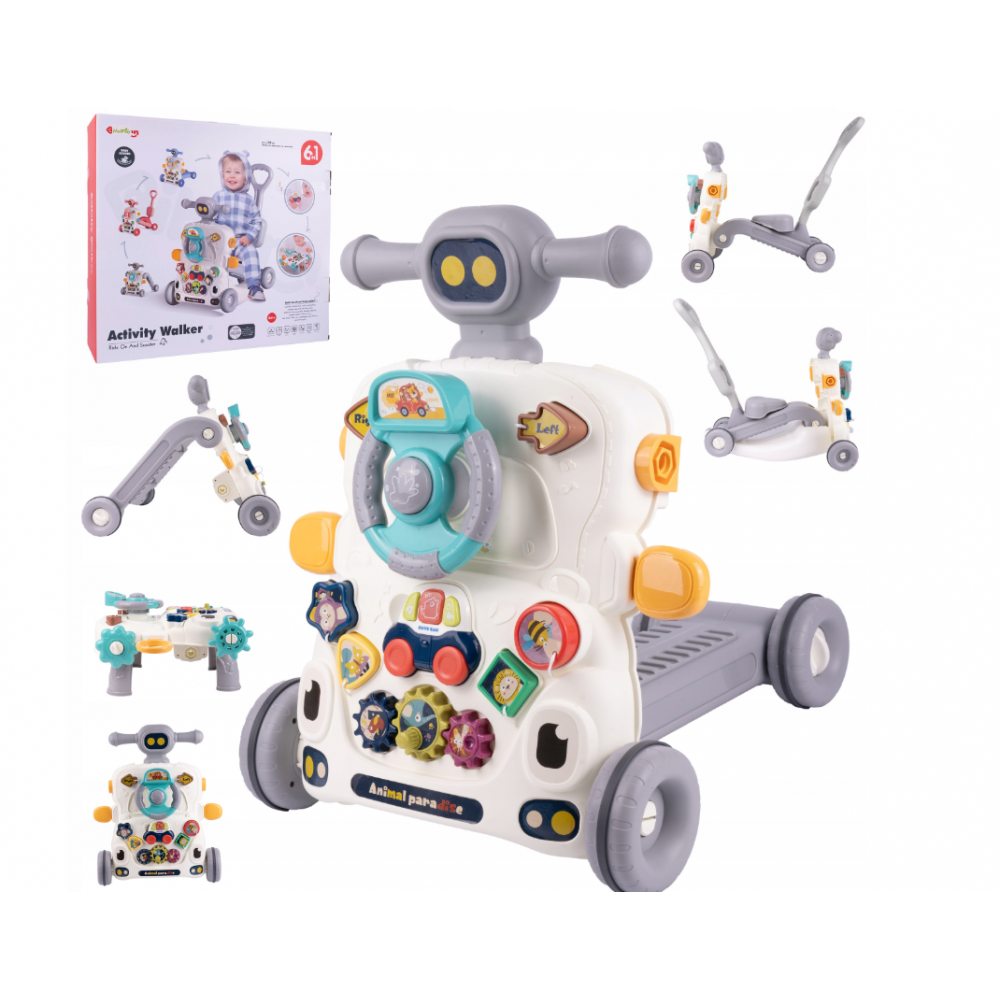 Ja meklējat rotaļlietu, kas ne tikai sniegs jūsu bērnam stundām ilgas izklaides, bet arī atbalstīs viņa attīstību, 6-in-1 aktivitāšu ratiņi ir lieliska izvēle. Šis inovatīvais produkts apvieno šādas funkcijas: