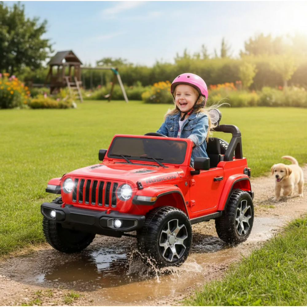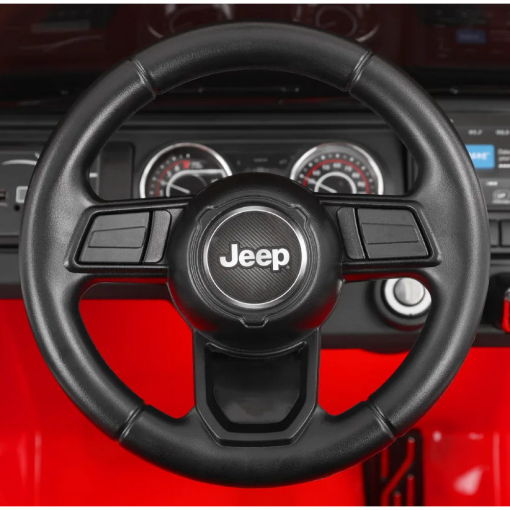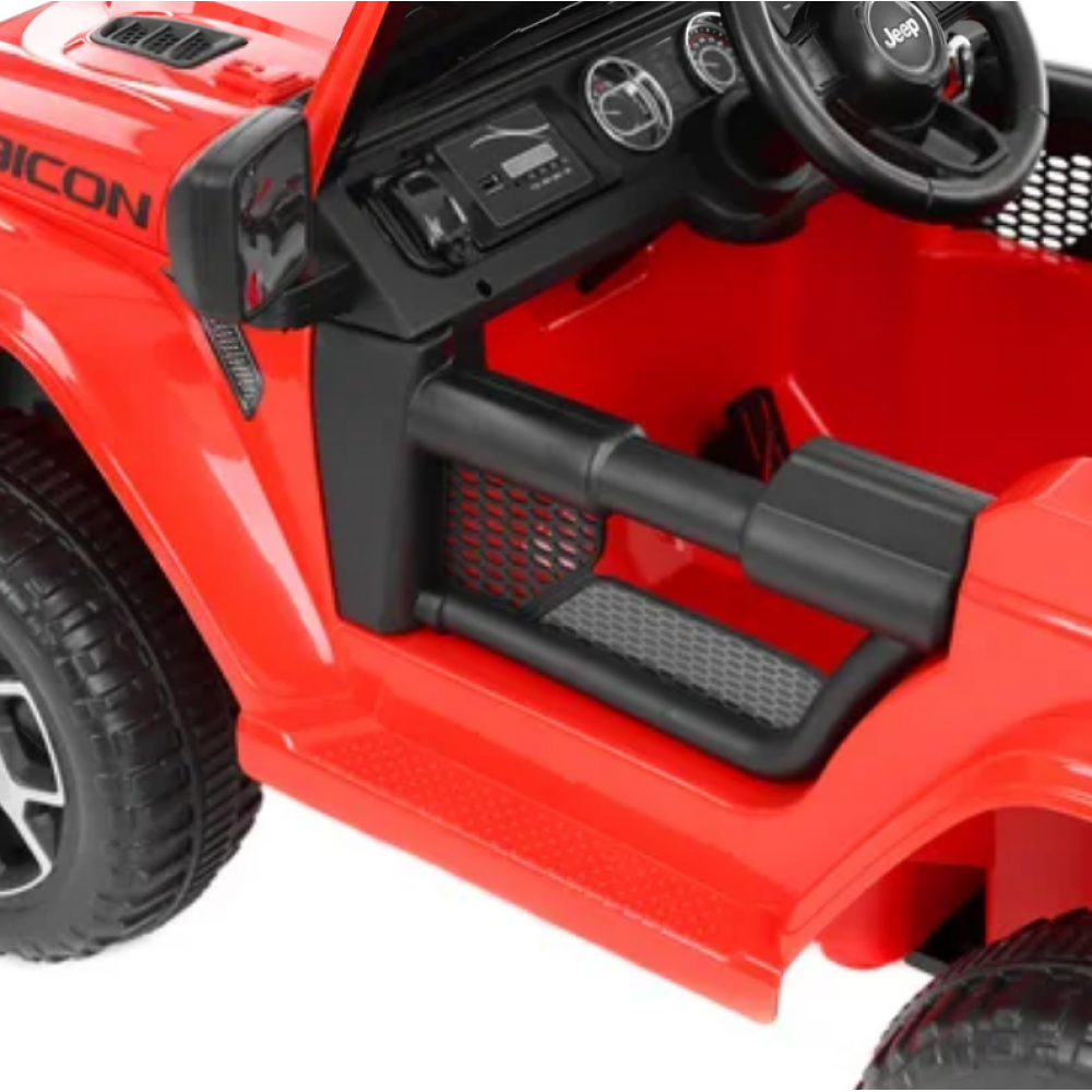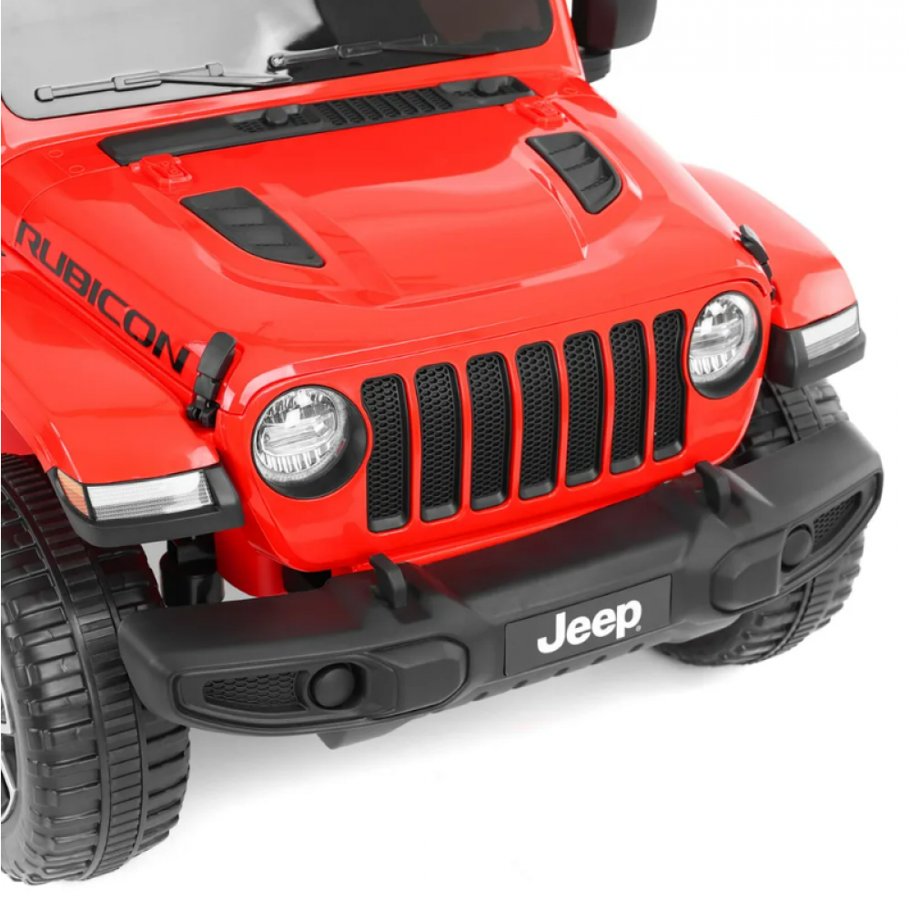 Ar akumulatoru darbināms Jeep Wrangler Rubicon braucamkrēsls baltā krāsā. Piemērots bērniem vecumā no 3 līdz 8 gadiem. Maksimālā slodze 35 kg. Akumulators 12 V, 10 Ah / 12 V, 2 x 35 W. 2 motori, skaņas un gaismas efekti, MP3, USB, SD. Oriģinālā Jeep Wrangler Rubicon licence.