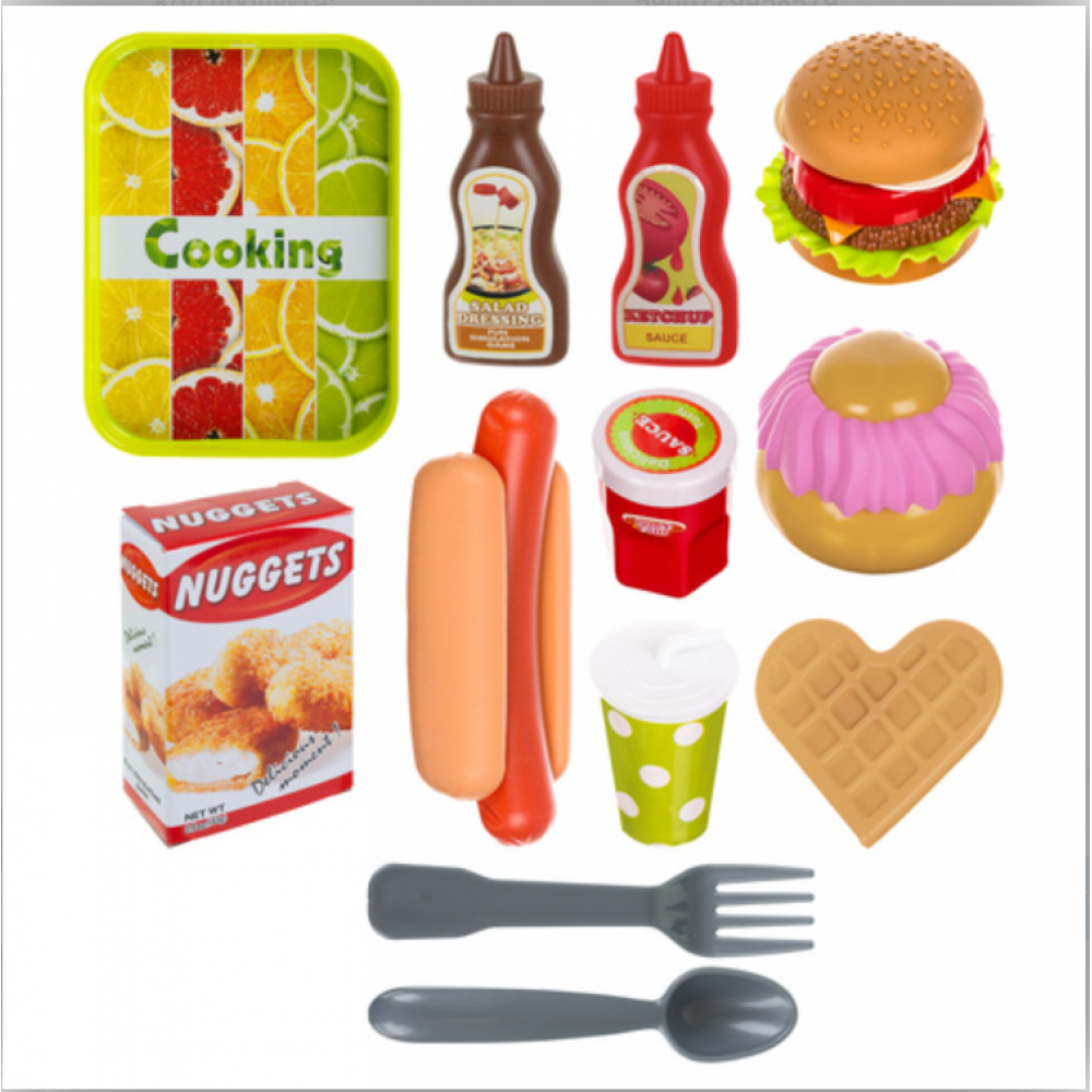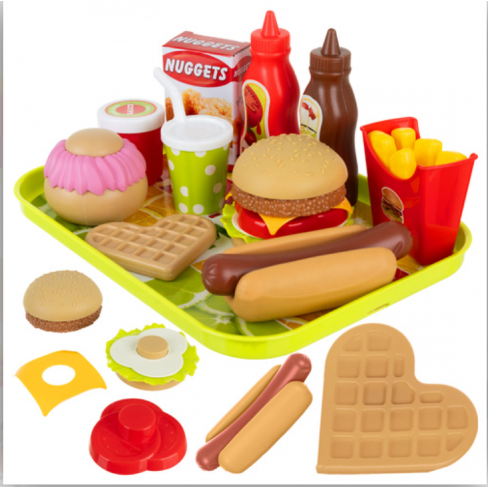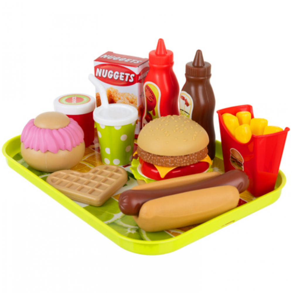 26 detaļas – pilnīga, krāsaina rotaļu ēdienkarte. Ja uztraucaties, ka jūsu bērnam ātri apniks šī rotaļlieta, šis komplekts piedāvā plašas iespējas. Burgeri, hotdogi, vafeles, frī kartupeļi, nageti, dzērieni un piedevas – pilns komplekts, kas ļauj jums izveidot neskaitāmas ēdienu kombinācijas.