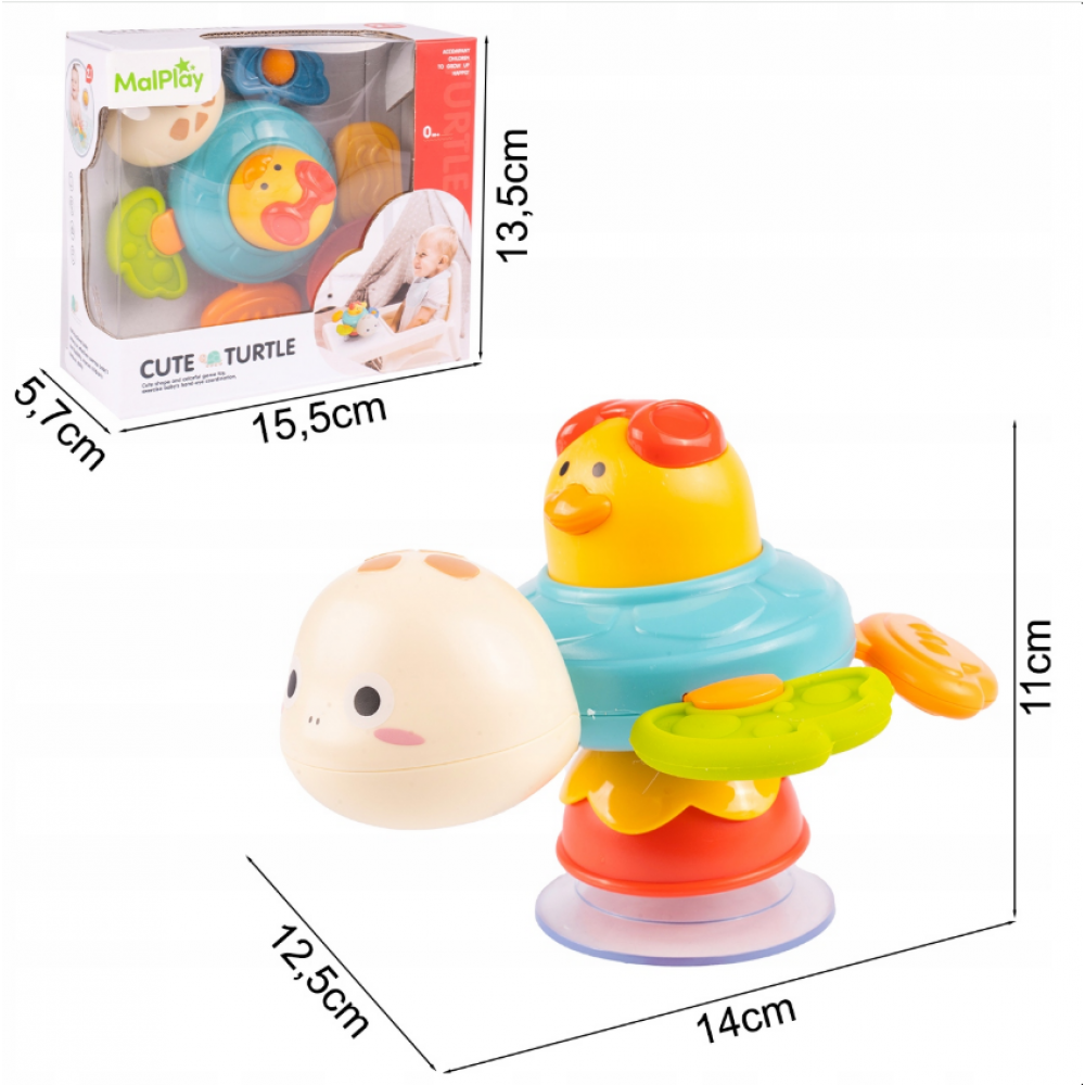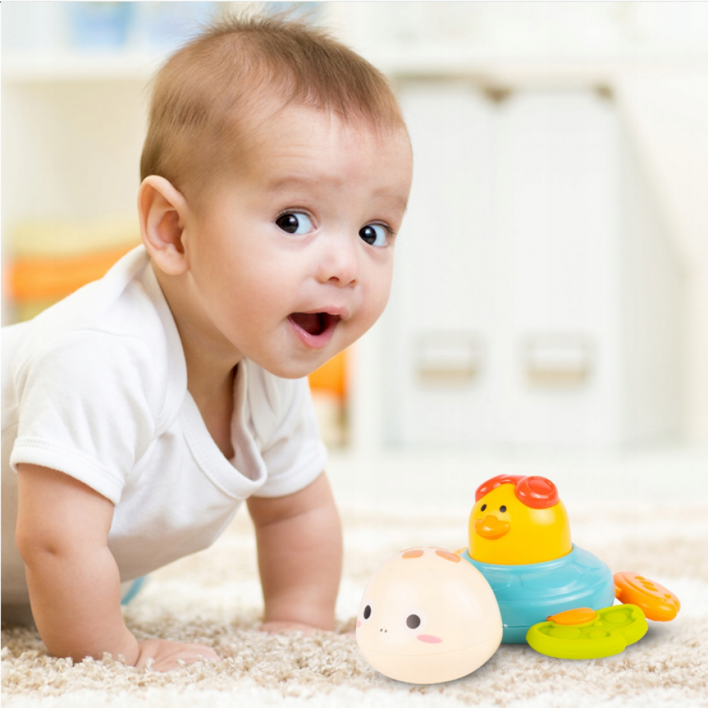 Šīs rotaļlietas noslēpums ir īpašs rotējošs mehānisms, kas ļauj tai griezties un kustēties. Vienkārši uztiniet mehānismu, un bruņurupucis sāk griezties, kas bērniem sagādā īstu prieku. Šī kustība piesaista mazuļa uzmanību, attīstot viņa novērošanas prasmes un mācot vienkāršus fizikas principus – cēloņus un sekas.