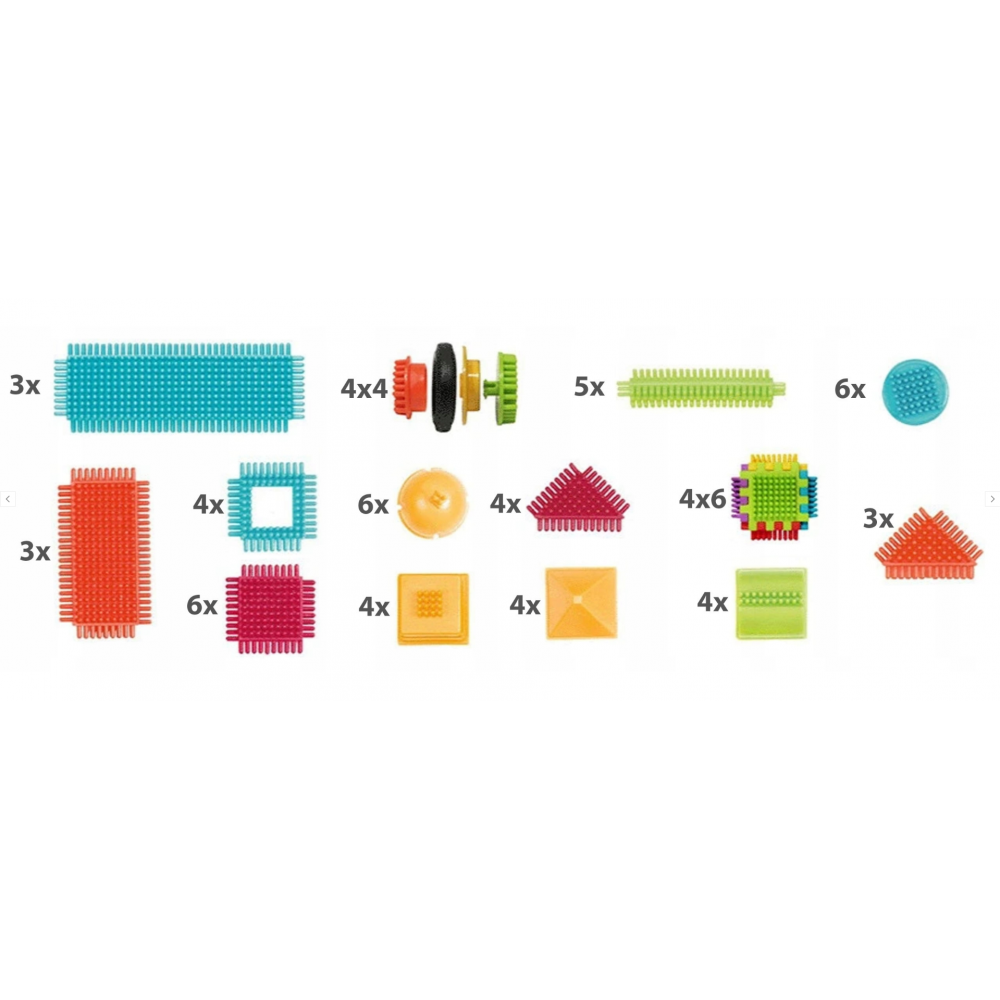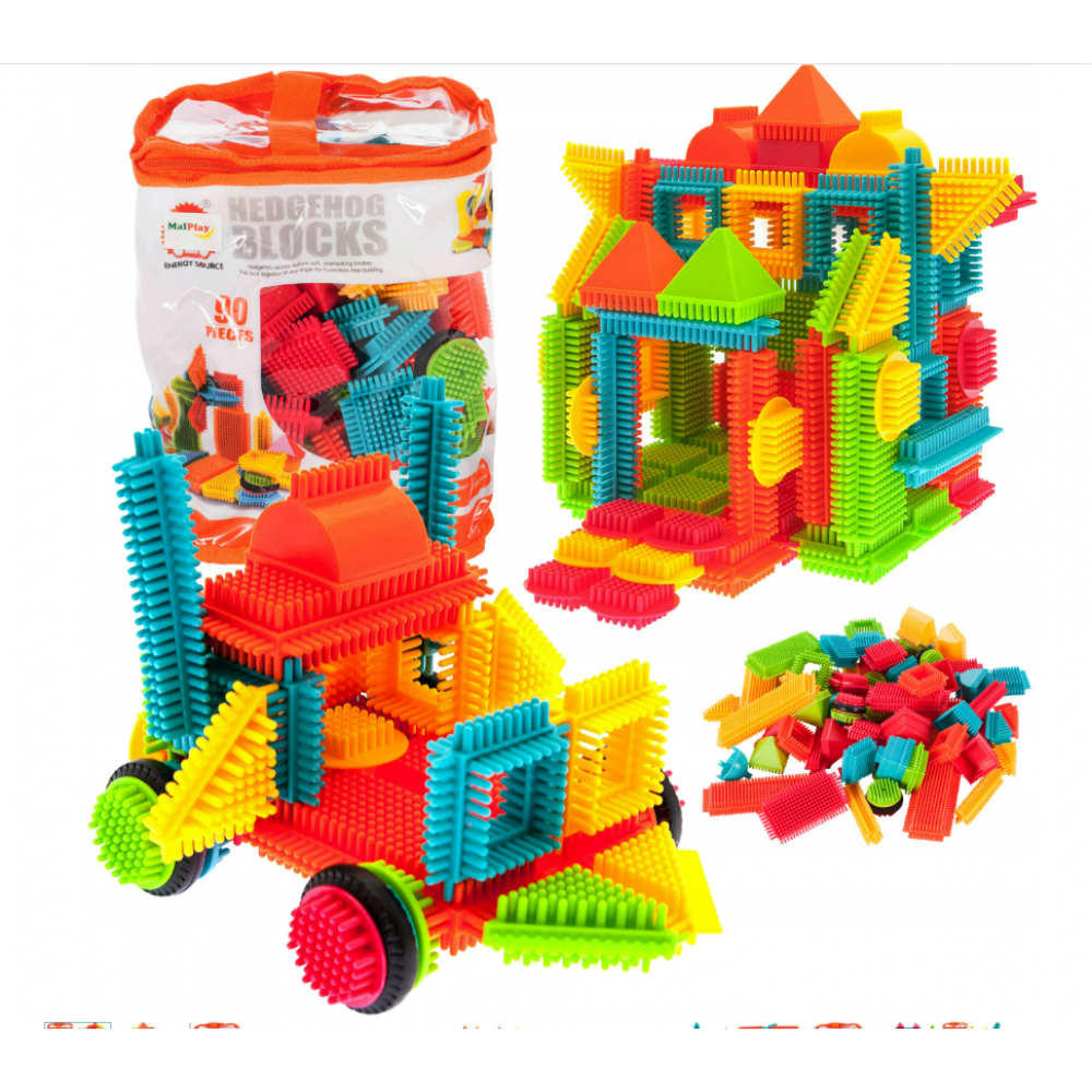 - Komplektā ir 90 dažādu formu klucīši pat 5 sulīgās krāsās.