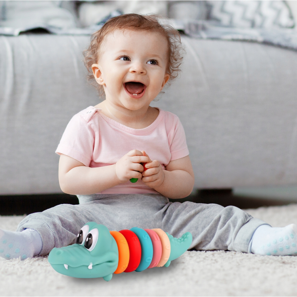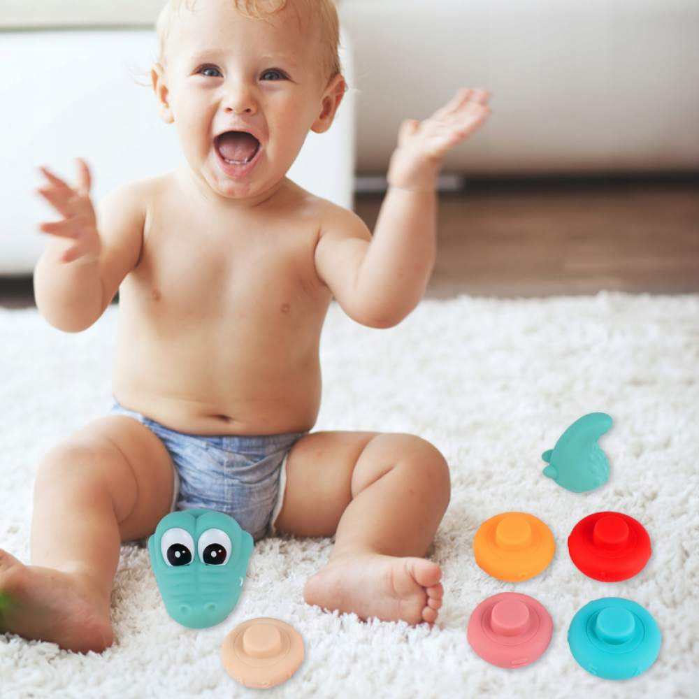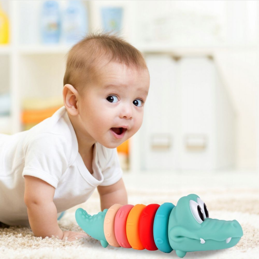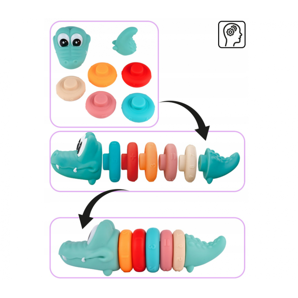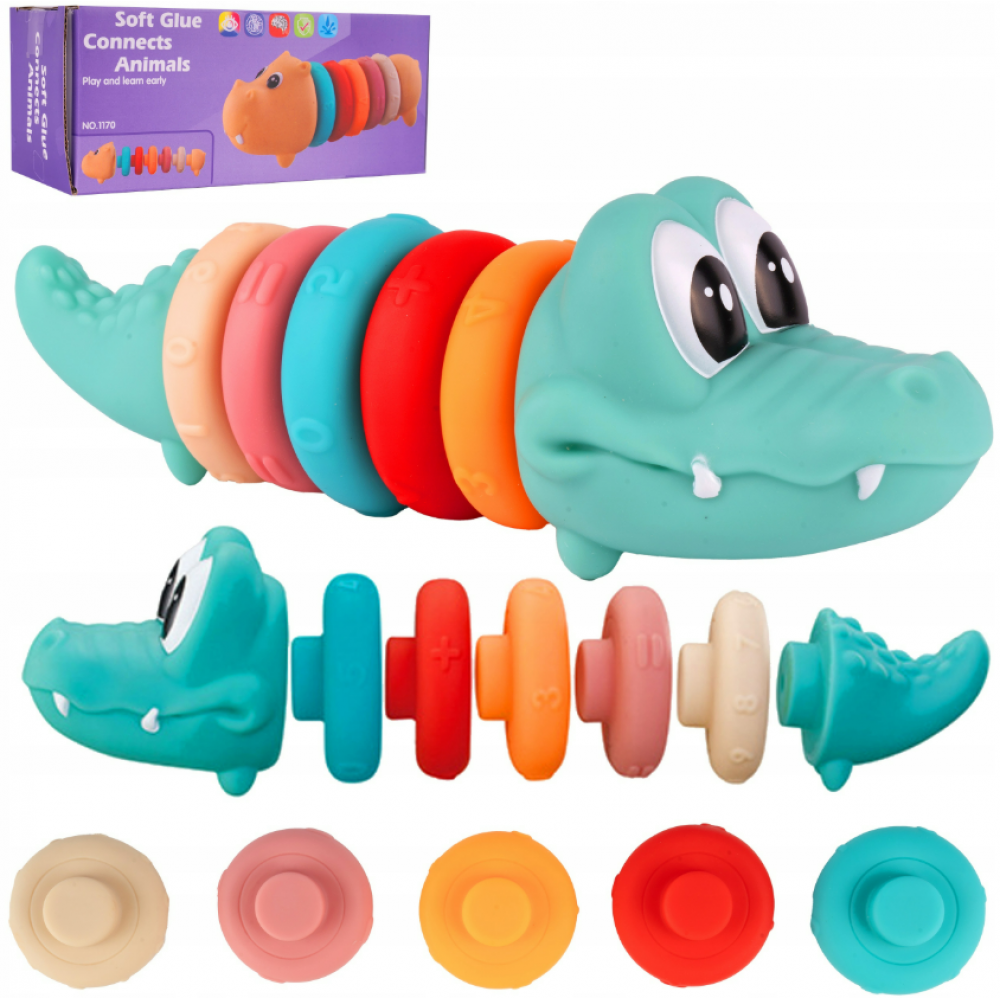 Mīkstie sensorie krokodila klucīši savienošanai: 5 gredzeni, skaitļi