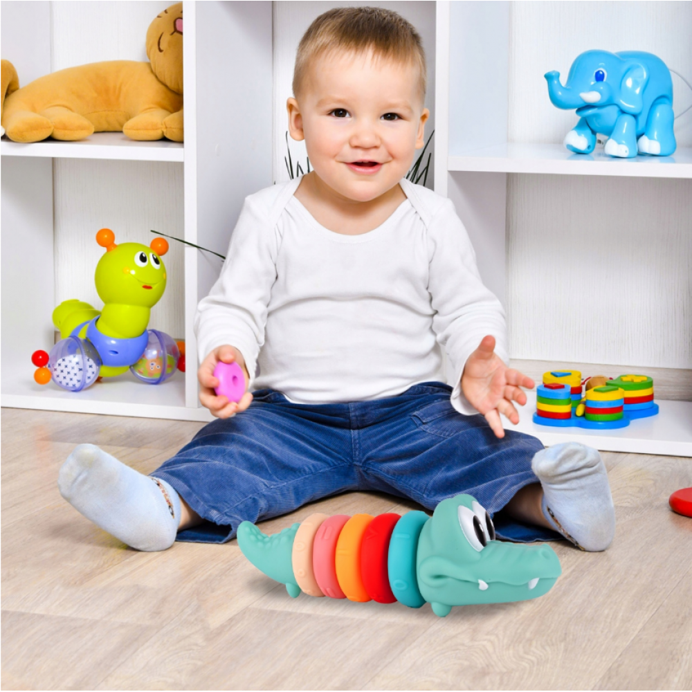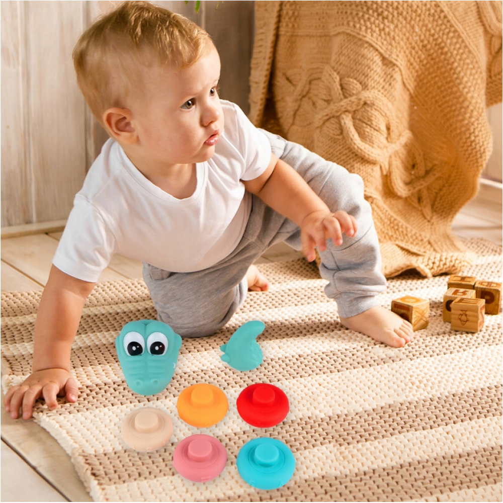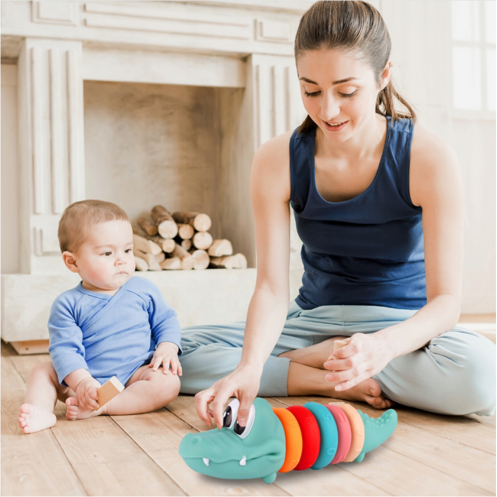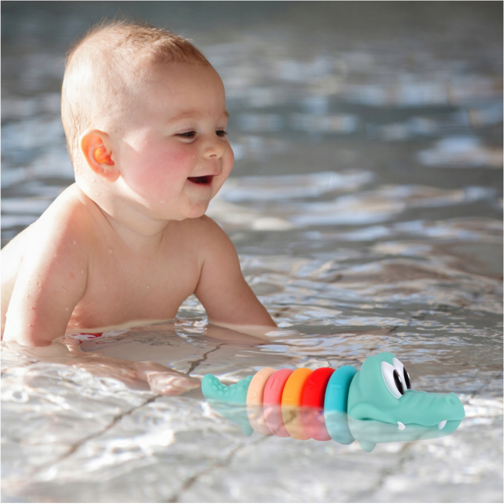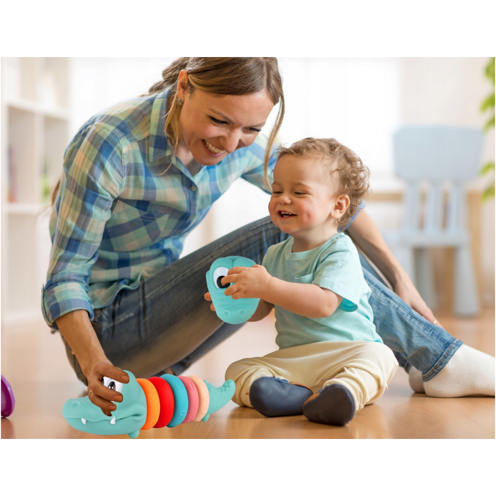 Mīkstie sensorie krokodila klucīši savienošanai: 5 gredzeni, skaitļi