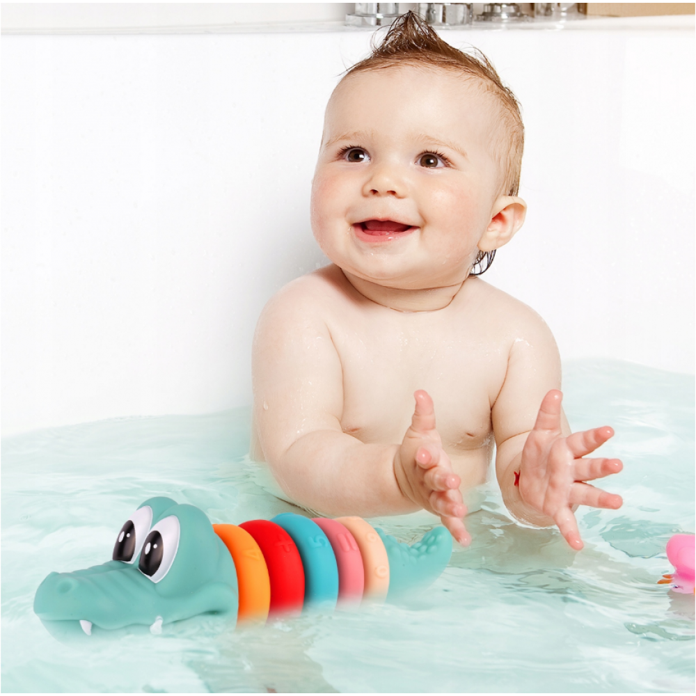 - Spēlēšanās ar klucīšiem var notikt pat ūdenī , peldoties, kas noteikti sniegs papildu prieku mazajiem.
