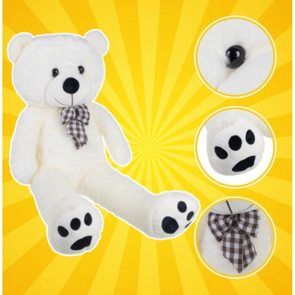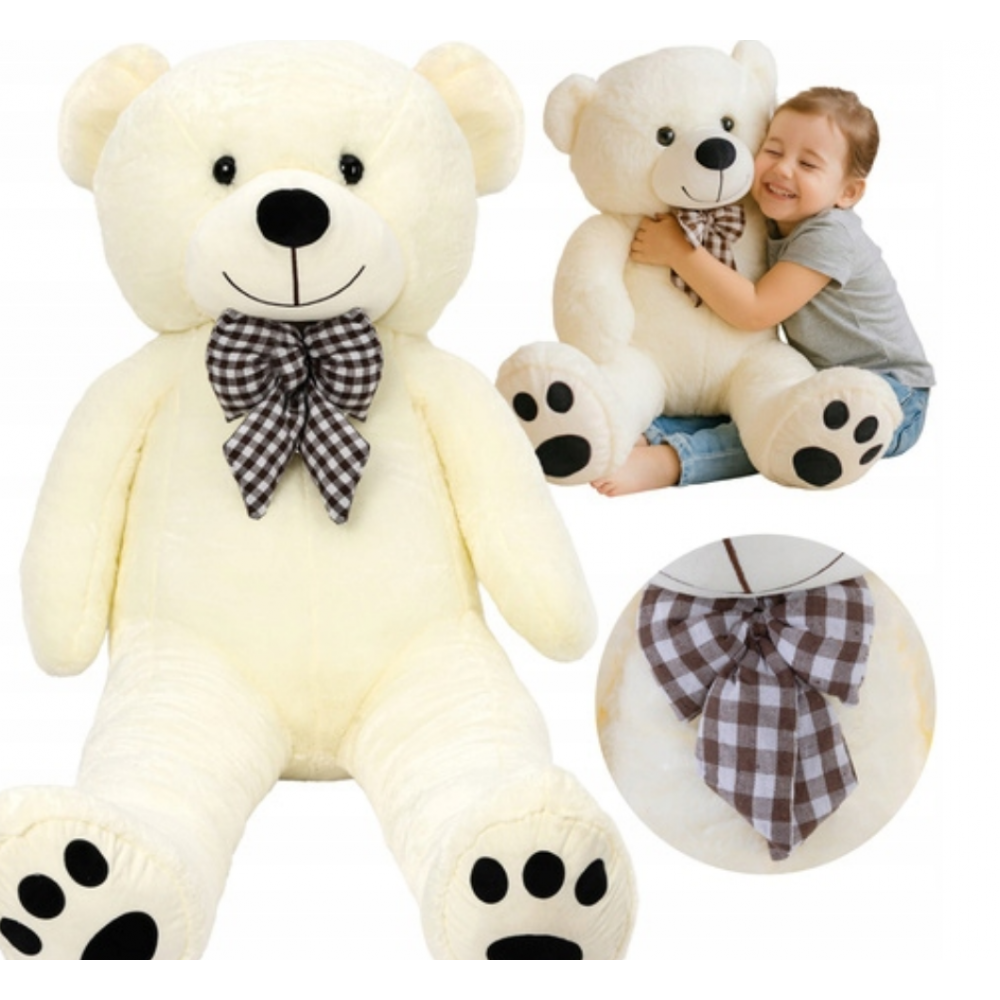 Kruzzel rotaļu lācītis 100 cm - krēmkrāsas talismans ar bantīti - mīksta pūkains rotaļlieta bērniem un pieaugušajiem - viegla, drošs pildījums un rūpīga šūšana