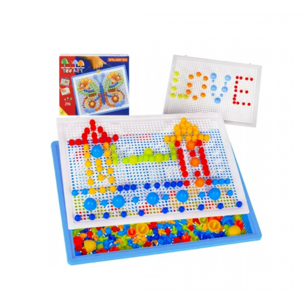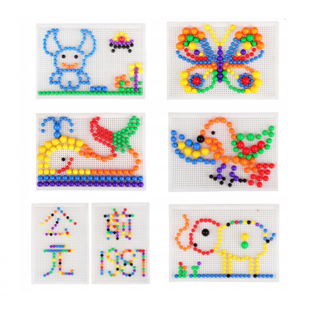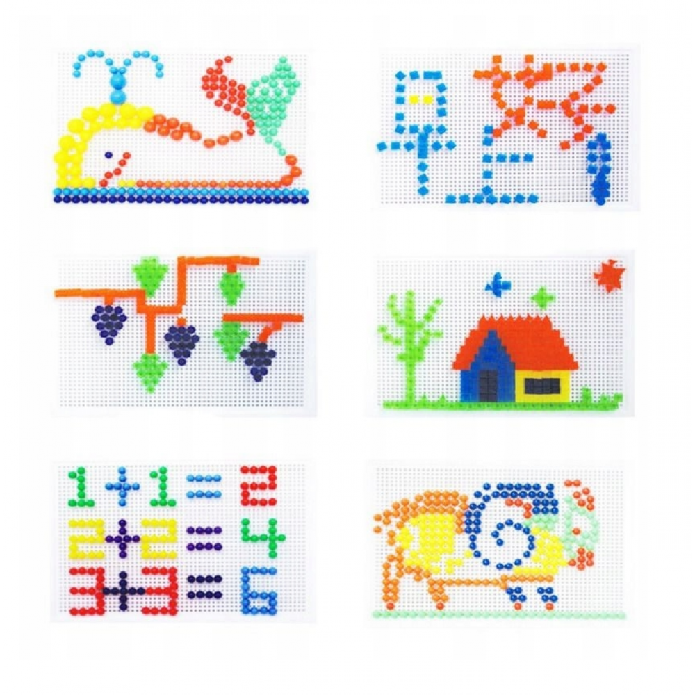 - Vienkārša rotaļlieta, kas sastāv no krāsainām plastmasas adatām un perforētas plāksnes to piestiprināšanai.