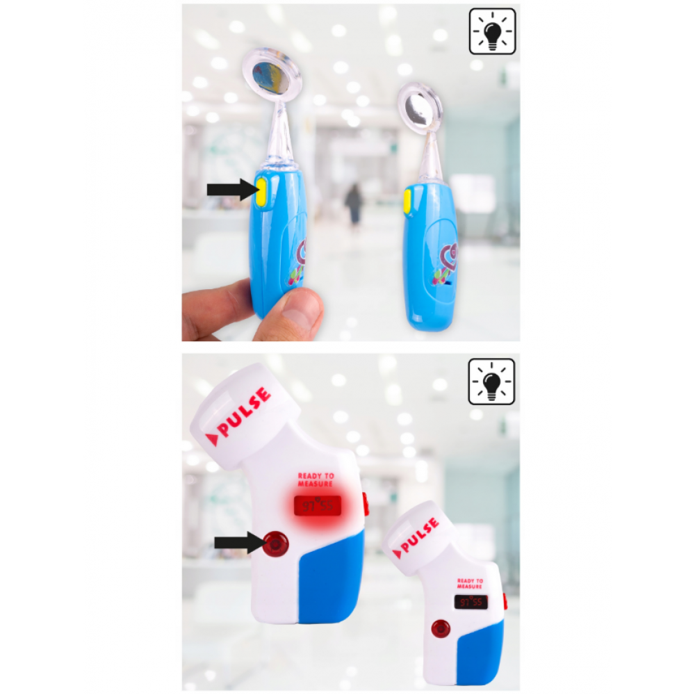 ĀRSTA KOMPLEKTS MAZAIS ĀRSTA STETOSKOPS ŠĻIRCE TERMOMETRS BATERIJAS